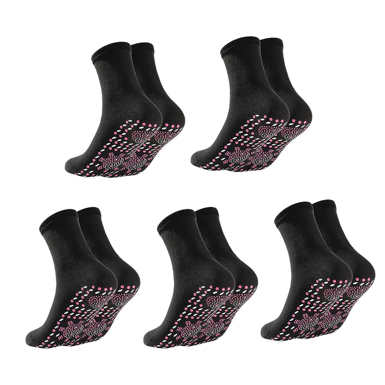 ? More socks can relieve the fatigue of the legs, relieve pain, regulate the nervous system, heat yourself, regulate blood circulation.Create static foot massage, the foot massage has been used for thousands of years to prevent and treat various diseases.According to the theory of traditional Chinese medicine, the reflection point is almost all organs on the sole of the foot.Stimulation in these areas (massage, heat, acupuncture, etc.) has a positive effect on the corresponding organs. ?Specification? Material: polyester cotton Color: Black Size: 38-43 (a size fits everyone) Package includes: 5 pairs of self -warming socks Effect: anti-fatigue, keep warm, cold resistance ?? Notice: The picture is the back of the socks, you have to turn it around when wearing.? ?Width application? Heated socks are very suitable for various outdoor activities in winter such as fishing, camping, skiing, hiking, hiking, cycling, mountaineering, working outdoors, etc. You can also wear indoors.? ?Multifunction? 38-43 (a size fits everyone), magnetic socks can relieve leg fatigue, relieve pain, regulate the nervous system, heat up, remove moisture and eliminate smells, eliminate swelling of legs and feet.Good therapy for ankles and feet for frostbite.? ?Self-warming Tourmaline socks? The underside of the socks can warm up yourself, promotes blood circulation to warm and relax your feet in cold weather.? ?Foot massage? Our magnetic socks use high -quality hot spots by stimulating the acupuncture points of the feet to achieve a massage effect.Use our massage socks in a natural and effortless way while walking and enjoying new vitality and comfort.? ?Material? Thermotherapy sock made of high-quality polyester cotton with the properties soft and comfortable, has a long service life. ??Magnetsocken können die Ermüdung der Beine lindern, Schmerzen lindern, das Nervensystem regulieren, sich selbst erwärmen, die Durchblutung regulieren. Statische Fußmassage erzeugen, Die Fußmassage wird seit Tausenden von Jahren zur Vorbeugung und Behandlung verschiedener Krankheiten eingesetzt. Nach der Theorie der traditionellen chinesischen Medizin befindet sich der Reflexionspunkt fast aller Organe an der Fußsohle. Eine Stimulation an diesen Stellen (Massage, Wärme, Akupunktur etc.) wirkt sich positiv auf die entsprechenden Organe aus. ?Spezifikation? Material: Polyester-Baumwolle Farbe: schwarz Größe: 38-43 (Eine Grösse passt allen) Paket beinhaltet: 5 Paar selbsterwärmende Socken Wirkung:Anti-Müdigkeit, Warmhalten, Kältebeständigkeit ??HINWEIS: Das Bild ist die Rückseite der Socken, Sie müssen sie beim Tragen umdrehen.??Breite Anwendung?Beheizte Socken eignen sich sehr gut für verschiedene Outdoor-Aktivitäten im Winter wie Angeln, Camping, Skifahren, Jagen, Wandern, Radfahren, Bergsteigen, Arbeiten im Freien usw. Sie können sie auch im Innenbereich tragen. ??Multifunktion?38-43 (Eine Grösse passt allen), Magnetsocken können Beinermüdung lindern, Schmerzen lindern, das Nervensystem regulieren, sich erwärmen, Feuchtigkeit entfernen und Gerüche beseitigen, Schwellungen von Beinen und Füßen beseitigen. Gute Therapie für Knöchel und Füße bei Erfrierungen. ??Selbsterwärmende Turmalin-Socken?Die Unterseite der Socken kann sich selbst erwärmen, Fördert Die Durchblutung, um Ihre Füße bei kaltem Wetter zu wärmen und zu entspannen. ??Fußmassage?Unsere Magnetsocken verwenden hochwertige Hot Spots, indem sie die Akupunkturpunkte der Füße stimulieren, um einen Massageeffekt zu erzielen. Verwenden Sie unsere Massagesocken auf natürliche und mühelose Weise beim Gehen und genießen Sie neue Vitalität und Komfort. ??Material?Thermotherapie-Socke Aus hochwertiger Polyester-Baumwolle mit den Eigenschaften weich und bequem, hat eine lange Lebensdauer.DSLIHA 5 Paare Selbsterwärmende Socken, unisex Magnetfeldtherapie-Socken, Turmalin selbsterwärmend magnetisch socken, Winter Warme Massagesocken, zum Wandern, Skifahren, Camping