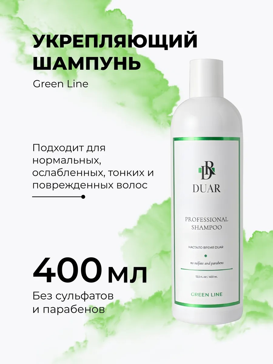 DUAR Шампунь для волос женский для поврежденных волос Green Line