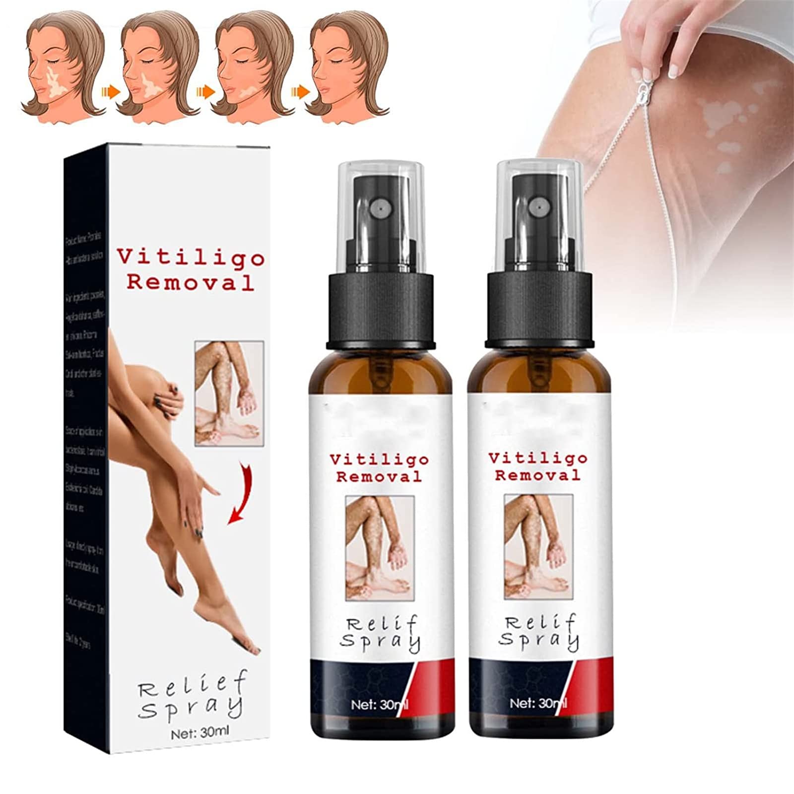 of the product Function: 1. Promote the absorption of melanin and repair the skin. 2. Clear skin toxins and adjust body balance. 3. Deep into the skin, rich absorption care. Specification: Net content: 30ml Shelf life: 3 years Package includes: 1 2 3 pcs × spray Notes: 1. Due to lighting effects and shooting angles, there may be chromatic aberration in the product, please understand. 2. Due to manual measurement, there is a certain error in the product size.Simple and convenient Gently apply the spray to the skin, massage and absorb, very convenient. Instant Relief Vitiligoremoval relief spray is a non-greasy moisturizing spray that penetrates the skin to stimulate healing. the intense moisturizing solution penetrates thick areas of the skin to provide both immediate and long-lasting relief. Causes When the renewal rate of skin cells is faster than normal. As a result, immature cells quickly accumulate on the skin's surface, forming scaly, crusty patches covered with scales. Plant Formula: Adopts natural plant formula, which is kind to the skin and should be used with caution on wounds on the skin. Gentle and effective. Improvement of the skin Improves the skin by reducing inflammation and removing scales. It can relieve vitiligo skin and reduce the appearance of vitiligo.VitiligoRemoval Relief Spray Vitiligo Skin Repair Spray Psoriasis Relief Spray Psoriasis Behandeling Spray Kalmerend en hydraterend Vermindert witte vlekken op de huid van het product Functie: 1. Bevorder de opname van melanine en herstel de huid. 2. Ruim huidgifstoffen op en pas de lichaamsbalans aan. 3. Diep in de huid, rijke absorptieverzorging. Specificatie: Netto inhoud: 30ml Houdbaarheid: 3 jaar Pakket bevat: 1 2 3 stks × spray Opmerkingen: 1. Vanwege lichteffecten en opnamehoeken kunnen er chromatische aberratie in het product zijn, begrijp het alsjeblieft. 2. Vanwege handmatige meting is er een bepaalde fout in de productgrootte.Eenvoudig en handig Breng de spray voorzichtig aan op de huid, masseer en absorbeer, erg handig. Instant Relief Vitiligoremoval relief spray is een niet-vette hydraterende spray die de huid binnendringt om genezing te stimuleren. de intense vochtinbrengende oplossing dringt door dikke delen van de huid om zowel onmiddellijke als langdurige verlichting te bieden. Oorzaken Wanneer de vernieuwingssnelheid van huidcellen sneller is dan normaal. Dientengevolge hopen onrijpe cellen zich snel op het huidoppervlak op en vormen schilferige, knapperige plekken bedekt met schubben. Plantenformule: neemt natuurlijke plantenformule aan, die vriendelijk is voor de huid en met voorzichtigheid moet worden gebruikt bij wonden op de huid. Zacht en effectief. Verbetering van de huid Verbetert de huid door ontstekingen te verminderen en schubben te verwijderen. Het kan vitiligo-huid verlichten en het uiterlijk van vitiligo verminderen.