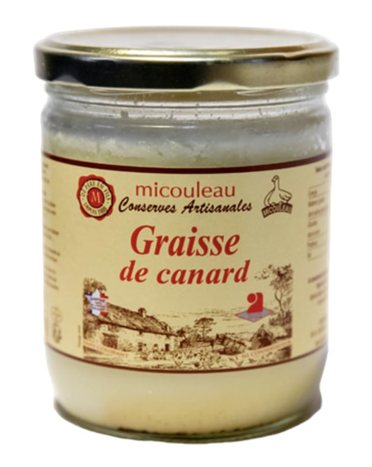 Set of 3 boxes. Duck fat from Maison Micouleau, 320g jar. A Traditional and Versatile Ingredient Duck fat from Maison Micouleau is an authentic and essential product in traditional South-West cuisine. Used for centuries, this fat is prized for its rich taste and its multiple culinary uses. It adds a subtle flavor to dishes, while being healthier than other animal fats. Tasty and Healthy Cuisine Rich in monounsaturated fatty acids, duck fat is a healthier alternative to butter or other animal fats. It stands out for its high smoke point, which makes it ideal for high-temperature cooking, such as fried potatoes or grilled meat. In addition to being tasty, it is also known for its benefits for cardiovascular health when consumed in moderation. How to Use Duck Fat This product is particularly appreciated in the preparation of traditional dishes such as duck confit, sarladaise potatoes, or for roasting vegetables. Duck fat can also replace oil or butter in the preparation of savory pastries like quiches, providing a unique and authentic flavor. In addition, it is ideal for extending the shelf life of meats. Artisanal Quality and Local Commitment At Micouleau, the duck fat is prepared in an artisanal manner, respecting traditional methods. The ducks are raised outdoors, on local farms in the South-West, ensuring impeccable quality and traceability. This know-how guarantees a pure and natural product, without additives, which meets the strictest standards in food production. A Product Respectful of the Terroir By choosing duck fat from Maison Micouleau, you are opting for a product that embodies the spirit of the French terroir. The brand makes a point of respecting local culinary traditions while guaranteeing sustainable practices. Duck fat is not only tasty, but it is also part of a responsible consumption approach, favoring short circuits and an ethical production method. Storage Tips Duck fat can easily be stored for several months in the refrigerator. It can also be frozen for later use, without losing its taste qualities. It is important to store it in an airtight container to prevent it from oxidizing or taking on other flavors. Why choose Micouleau Duck Fat? Duck fat from Maison Micouleau is an essential ingredient for lovers of traditional and gourmet cuisine. Its exceptional quality, rich taste and health benefits make it a preferred fat in your culinary preparations. Whether you use it to roast vegetables, prepare preserves or even in baking, it will enhance your dishes and offer you an authentic taste experience. INGREDIENTS Duck fat, salt.Duck Fat will enhance your meats, sautéed vegetables, fries and fried potatoes as well as your sauces and cassoulet. Lot de 3 boites. Graisse de Canard de la Maison Micouleau, le bocal de 320g. Un Ingrédient Traditionnel et Polyvalent La graisse de canard de la Maison Micouleau est un produit authentique et essentiel dans la cuisine traditionnelle du Sud-Ouest. Utilisée depuis des siècles, cette graisse est prisée pour son goût riche et ses multiples usages culinaires. Elle permet d'ajouter une saveur subtile aux plats, tout en étant plus saine que d'autres matières grasses animales. Une Cuisine Savoureuse et Saine Riche en acides gras monoinsaturés, la graisse de canard est une alternative plus saine que le beurre ou d'autres graisses animales. Elle se distingue par son point de fumée élevé, ce qui la rend idéale pour les cuissons à haute température, telles que les pommes de terre sautées ou la viande grillée. En plus d'être savoureuse, elle est également reconnue pour ses bienfaits pour la santé cardiovasculaire lorsqu'elle est consommée avec modération. Comment Utiliser la Graisse de Canard Ce produit est particulièrement apprécié dans la préparation de plats traditionnels comme le confit de canard, les pommes de terre sarladaises, ou encore pour rôtir des légumes. La graisse de canard peut également remplacer l'huile ou le beurre dans la préparation de pâtisseries salées comme les quiches, apportant une saveur unique et authentique. De plus, elle est idéale pour prolonger la durée de conservation des viandes. Qualité Artisanale et Engagement Local Chez Micouleau, la graisse de canard est préparée de manière artisanale, en respectant les méthodes traditionnelles. Les canards sont élevés en plein air, dans des fermes locales du Sud-Ouest, assurant ainsi une qualité et une traçabilité irréprochables. Ce savoir-faire garantit un produit pur et naturel, sans additifs, qui respecte les normes les plus strictes en matière de production alimentaire. Un Produit Respectueux du Terroir En choisissant la graisse de canard de la Maison Micouleau, vous optez pour un produit qui incarne l'esprit du terroir français. La marque met un point d'honneur à respecter les traditions culinaires locales tout en garantissant des pratiques durables. La graisse de canard est non seulement savoureuse, mais elle s'inscrit également dans une démarche de consommation responsable, favorisant des circuits courts et un mode de production éthique. Conseils de Conservation La graisse de canard se conserve facilement pendant plusieurs mois au réfrigérateur. Elle peut également être congelée pour une utilisation ultérieure, sans perdre ses qualités gustatives. Il est important de la stocker dans un contenant hermétique pour éviter qu'elle ne s'oxyde ou ne prenne d'autres saveurs. Pourquoi choisir la Graisse de Canard Micouleau ? La graisse de canard de la Maison Micouleau est un ingrédient incontournable pour les amateurs de cuisine traditionnelle et gourmande. Sa qualité exceptionnelle, son goût riche et ses bienfaits pour la santé en font une matière grasse à privilégier dans vos préparations culinaires. Que vous l'utilisiez pour rôtir des légumes, préparer des confits ou même en pâtisserie, elle saura sublimer vos plats et vous offrir une expérience gustative authentique. INGRÉDIENTS Graisse de canard, s