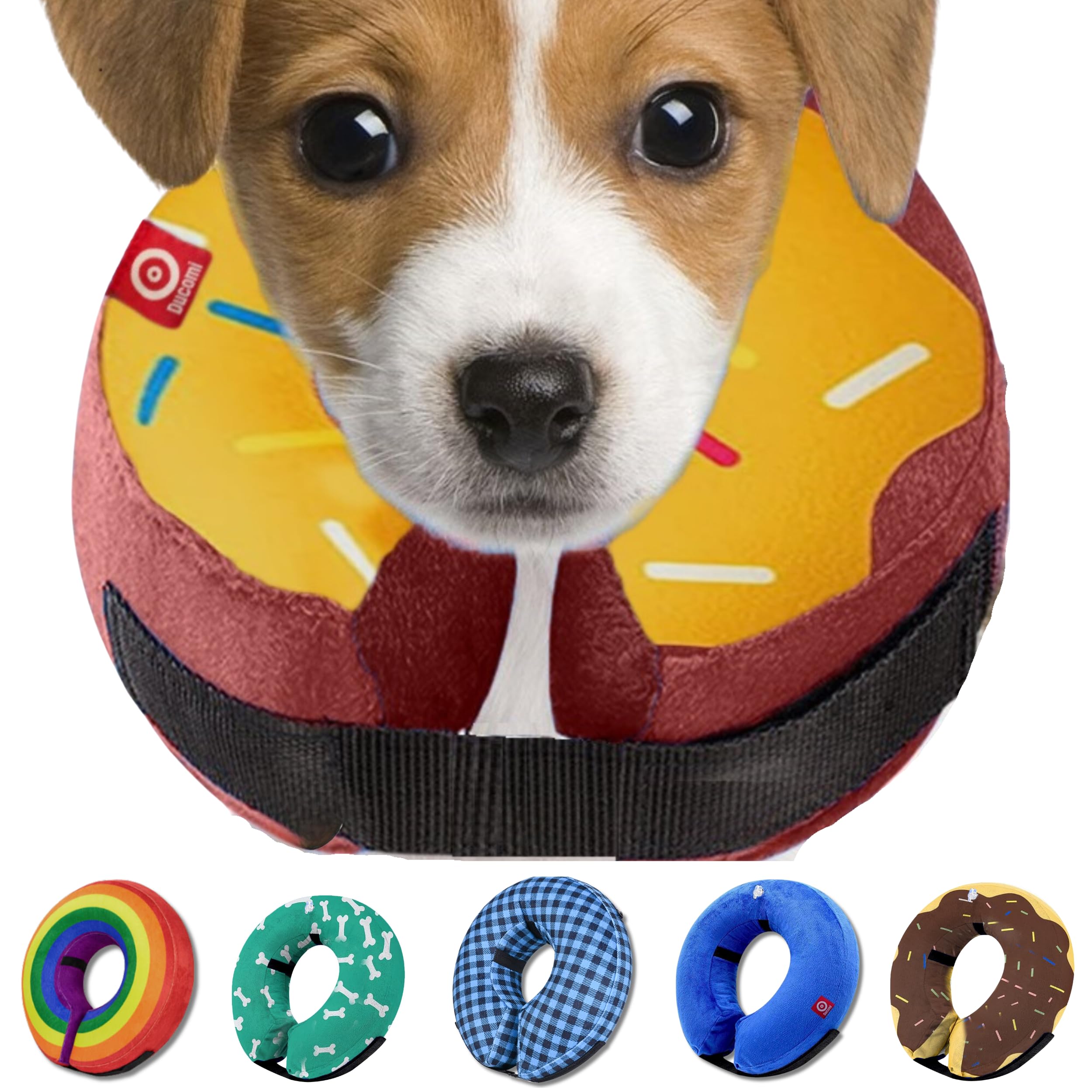 Suitable for all sizes - it fits your dog exactly.Simply measure your dog's neck size with one meter and select one of our sizes.Easy to wash and store: Thanks to the zipper on the side of the protective collar, the dog protection collar can be separated from the inflatable interior cushion.It is possible to empty the collar and easily remove the inner ring in order to be able to insert it in the washing machine and always keep it clean and ready for use.As soon as the air is drained, the collar is small enough to be kept in a small box that does not take up much space.Anti-fall design-There are three eyelets on the inside of the protective collar, which are specially intended for inserting the collar, which your dog usually wears so that it stays calm and does not fall.The Velcro fastener on the outside is adjustable to ensure that it is neither too loose nor too narrow for your dog.All of these details confirm that you don't have to worry about your pet because it cannot move out.Portable - consists of an outer ring made of blue fabric and an inner ring made of white plastic.The outer ring consists of very soft, skin -friendly oxford with a short plush effect and the inner ring made of PVC with maximum elasticity.Your dog will not feel overwhelmed or nervous through this soft, warm and comfortable collar.Recovery protection - The inflatable protective collar plays an important role in protecting the postoperative area and the injuries of your dog and prevents a new infection from scratches, leakage and dog bites.It will not block your dog's view or impair his daily activities.With this soft collar, your dog can heal faster and safer.FÜR ALLE GRÖSSEN GEEIGNET - Es passt genau zu Ihrem Hund. Messen Sie einfach den Halsumfang Ihres Hundes mit einem Meter und wählen Sie eine unserer Größen aus. EINFACH ZU WASCHEN UND ZU LAGERN: Das Hundeschutzhalsband kann dank des Reißverschlusses an der Seite des Schutzhalsbands vom aufblasbaren Innenpolster getrennt werden. Es ist möglich, den Kragen zu entleeren und den Innenring leicht zu entfernen, um ihn in die Waschmaschine einsetzen zu können und ihn immer sauber und einsatzbereit zu halten. Sobald die Luft abgelassen ist, ist der Kragen klein genug, um in einer kleinen Schachtel aufbewahrt zu werden, die nicht viel Platz einnimmt. ANTI-FALL-DESIGN - An der Innenseite des Schutzkragens befinden sich drei Ösen, die speziell zum Einsetzen des Kragens vorgesehen sind, den Ihr Hund normalerweise trägt, damit er ruhig bleibt und nicht fällt. Der Klettverschluss an der Außenseite ist verstellbar, um sicherzustellen, dass er für Ihren Hund weder zu locker noch zu eng ist. All diese Details bestätigen, dass Sie sich keine Sorgen um Ihr Haustier machen müssen, da es dieses nicht ausziehen kann. TRAGBAR - Besteht aus einem Außenring aus blauem Stoff und einem Innenring aus weißem Kunststoff. Der Außenring besteht aus sehr weichem, hautfreundlichem Oxford mit kurzem Plüscheffekt und der Innenring aus PVC mit maximaler Elastizität. Ihr Hund wird sich durch dieses weiche, warme und bequeme Halsband nicht überfordert oder nervös fühlen. WIEDERHERSTELLUNGSSCHUTZ - Das aufblasbare Schutzhalsband spielt eine wichtige Rolle beim Schutz des postoperativen Bereichs und der Verletzungen Ihres Hundes und verhindert eine erneute Infektion durch Kratzer, Leckstellen und Hundebisse. Es wird nicht die Sicht Ihres Hundes blockieren oder seine täglichen Aktivitäten beeinträchtigen. Mit diesem weichen Halsband kann Ihr Hund schneller und sicherer heilen.Ducomi Aufblasbares Halskrause Hund und Katze – zur Nach Operationen Erholung des Tieres – Freiheit bei Bewegungen und Sicht – Verhindert Kratzer und Bisse (Krapfen, XS) XS Krapfen