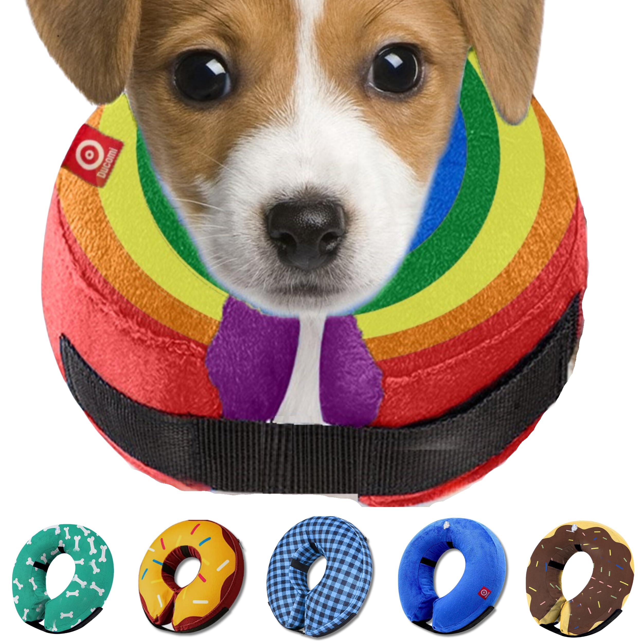 Suitable for all sizes - it fits your dog exactly.Simply measure your dog's neck size with one meter and select one of our sizes.Easy to wash and store: Thanks to the zipper on the side of the protective collar, the dog protection collar can be separated from the inflatable interior cushion.It is possible to empty the collar and easily remove the inner ring in order to be able to insert it in the washing machine and always keep it clean and ready for use.As soon as the air is drained, the collar is small enough to be kept in a small box that does not take up much space.Anti-fall design-There are three eyelets on the inside of the protective collar, which are specially intended for inserting the collar, which your dog usually wears so that it stays calm and does not fall.The Velcro fastener on the outside is adjustable to ensure that it is neither too loose nor too narrow for your dog.All of these details confirm that you don't have to worry about your pet because it cannot move out.Portable - consists of an outer ring made of blue fabric and an inner ring made of white plastic.The outer ring consists of very soft, skin -friendly oxford with a short plush effect and the inner ring made of PVC with maximum elasticity.Your dog will not feel overwhelmed or nervous through this soft, warm and comfortable collar.Recovery protection - The inflatable protective collar plays an important role in protecting the postoperative area and the injuries of your dog and prevents a new infection from scratches, leakage and dog bites.It will not block your dog's view or impair his daily activities.With this soft collar, your dog can heal faster and safer.FÜR ALLE GRÖSSEN GEEIGNET - Es passt genau zu Ihrem Hund. Messen Sie einfach den Halsumfang Ihres Hundes mit einem Meter und wählen Sie eine unserer Größen aus. EINFACH ZU WASCHEN UND ZU LAGERN: Das Hundeschutzhalsband kann dank des Reißverschlusses an der Seite des Schutzhalsbands vom aufblasbaren Innenpolster getrennt werden. Es ist möglich, den Kragen zu entleeren und den Innenring leicht zu entfernen, um ihn in die Waschmaschine einsetzen zu können und ihn immer sauber und einsatzbereit zu halten. Sobald die Luft abgelassen ist, ist der Kragen klein genug, um in einer kleinen Schachtel aufbewahrt zu werden, die nicht viel Platz einnimmt. ANTI-FALL-DESIGN - An der Innenseite des Schutzkragens befinden sich drei Ösen, die speziell zum Einsetzen des Kragens vorgesehen sind, den Ihr Hund normalerweise trägt, damit er ruhig bleibt und nicht fällt. Der Klettverschluss an der Außenseite ist verstellbar, um sicherzustellen, dass er für Ihren Hund weder zu locker noch zu eng ist. All diese Details bestätigen, dass Sie sich keine Sorgen um Ihr Haustier machen müssen, da es dieses nicht ausziehen kann. TRAGBAR - Besteht aus einem Außenring aus blauem Stoff und einem Innenring aus weißem Kunststoff. Der Außenring besteht aus sehr weichem, hautfreundlichem Oxford mit kurzem Plüscheffekt und der Innenring aus PVC mit maximaler Elastizität. Ihr Hund wird sich durch dieses weiche, warme und bequeme Halsband nicht überfordert oder nervös fühlen. WIEDERHERSTELLUNGSSCHUTZ - Das aufblasbare Schutzhalsband spielt eine wichtige Rolle beim Schutz des postoperativen Bereichs und der Verletzungen Ihres Hundes und verhindert eine erneute Infektion durch Kratzer, Leckstellen und Hundebisse. Es wird nicht die Sicht Ihres Hundes blockieren oder seine täglichen Aktivitäten beeinträchtigen. Mit diesem weichen Halsband kann Ihr Hund schneller und sicherer heilen.Ducomi Aufblasbares Halskrause Hund und Katze – zur Nach Operationen Erholung des Tieres – Freiheit bei Bewegungen und Sicht – Verhindert Kratzer und Bisse (Regenbogen, XS) XS Regenbogen