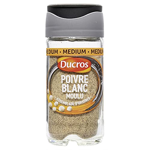 DUCROS. DUCROS CLASSIC GROUND WHITE PEPPER BOTTLE NO. 8 36G. Salt and pepper. Oils, spices, condiments, sauces, broths. Savory groceries.DUCROS. DUCROS FLACON POIVRE BLANC MOULU CLASSIQUE N 8 36G. Sel et poivre. Huiles, épices, condiments, sauces, bouillons. Epicerie salée.