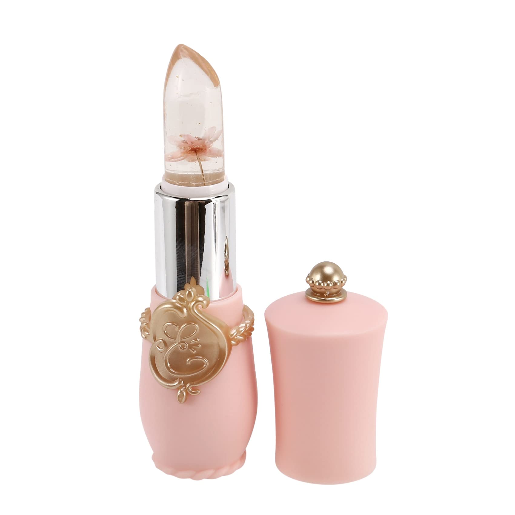 Duendhd Beauty Shiny Flower Crystal Jelly Lipstick Magic Temperature Change Color Lip Balm Makeup Pale Pink