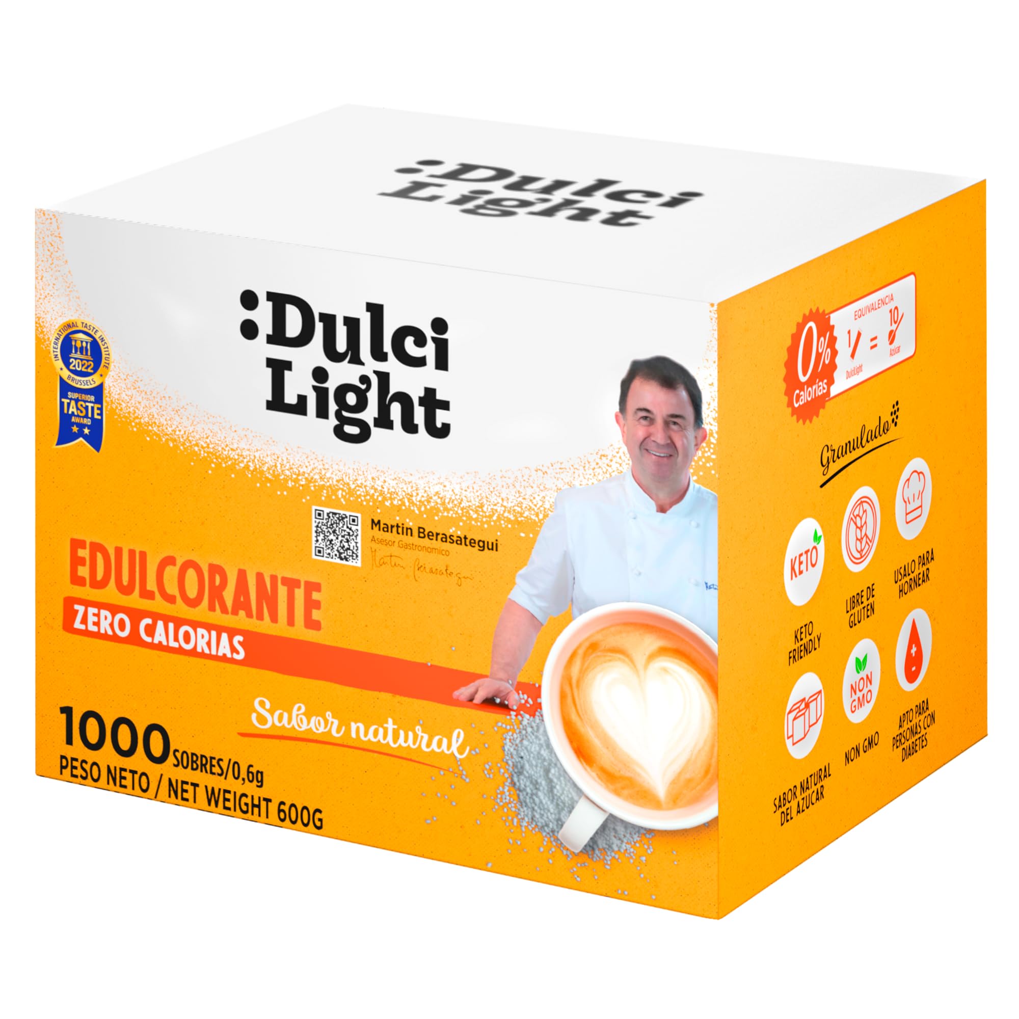 Dulci Light Sucralose - treat something sweet with a clear conscience Attention snack cats!We have the perfect solution for everyone who loves sweet food and want to save calories at the same time.With our Dulci Light Sucralose granulate you get a natural sugar substitute for your kitchen, which tastes like sugar but is still healthy. Healthy sugar alternative Sugar can not only be addicted, but also promote tooth decay, weaken the immune system and increase the risk of cardiovascular diseases.Therefore, there is now a large selection of sugar alternatives that do not have any health disadvantages and still provide high sweetness. In contrast to conventional sugar, the sucralose granulate is only absorbed to a very small extent when taking it, so that the sweetener has no influence on the blood sugar level.In addition, the sweetener is free of genetic engineering and gluten and is therefore not only ideal for diabetics, but also for vegans. Simply an all -rounder The Dulci Light Sucralose granulate convinces with a sweet taste, dissolves quickly and can be used both to refine food and drinks.Whether baked goods, desserts, fruit, muesli, yogurt, coffee, tea or cocktails, give your favorite dishes and drinks a seductive sweetness, without bitter aftertaste. dosage 0.6 g (a bag) Dulci Light correspond to 2 tablespoons or 10 g normal household sugar. Dulci Light Our health is very important to us from Dulci Light.Our healthy sweeteners contribute to a calorie -conscious diet and help you to sweeten your everyday life.Enjoyment without a guilty conscience! Ingredients / ingredients Sucralose dosage: 0.6 g (a bag) dulci light correspond to 2 tablespoons or 10 g normal household sugar.Versatile: Whether coffee, baked goods, desserts, fruit or yogurt, with our sugar substitute you can give drinks and food a pleasant sweetness.For diabetic: The sweetener not only convinces with 0% calories, but also has no influence on blood sugar and is tooth -friendly.No calories: Our sweetener delivers high sweetness in small quantities.So even when counting calories, the pleasure does not fall by the wayside.Sugar alternative: sucralose is a 100% natural sugar substitute.The sweetener contains 0% calories per bag and is made from pure sucralose powder.Sucralose is ideal if you want to consciously eat. Dulci Light Sucralose - Mit gutem Gewissen etwas Süßes gönnen Naschkatzen aufgepasst! Wir haben die perfekte Lösung für alle, die süße Speisen lieben und gleichzeitig Kalorien sparen wollen. Mit unserem Dulci Light Sucralose-Granulat erhältst Du einen natürlichen Zuckerersatz für Deine Küche, der zwar wie Zucker schmeckt, aber dabei noch gesund ist. Gesunde Zuckeralternative Zucker kann nicht nur süchtig machen, sondern auch Karies fördern, das Immunsystem schwächen und das Risiko für Herz-Kreislauf-Erkrankungen erhöhen. Daher gibt es mittlerweile eine große Auswahl an Zuckeralternativen, die keine gesundheitlichen Nachteile mit sich bringen und trotzdem eine hohe Süßkraft liefern. Im Gegensatz zu herkömmlichem Zucker wird das Sucralose-Granulat bei der Einnahme nur in sehr geringem Maße absorbiert, sodass der Süßstoff keinen Einfluss auf den Blutzuckerspiegel hat. Darüber hinaus ist das Süßungsmittel frei von Gentechnik und Gluten und ist somit nicht nur für Diabetiker hervorragend geeignet, sondern auch für Veganer. Einfach ein Allrounder Das Dulci Light Sucralose-Granulat überzeugt mit einem süßen Geschmack, löst sich schnell auf und kann sowohl zum Verfeinern von Lebensmitteln als auch Getränken verwendet werden. Ob Backwaren, Desserts, Obst, Müsli, Joghurt, Kaffee, Tee oder Cocktails, verleihe Deinen Lieblingsspeisen und -getränken eine verführerische Süße, ohne bitteren Nachgeschmack. Dosierung 0,6 g (ein Beutel) Dulci Light entsprechen 2 Esslöffeln oder 10 g normalem Haushaltszucker. Dulci Light Uns von Dulci Light liegt Deine Gesundheit sehr am Herzen. Unsere gesunden Süßungsmittel tragen zu einer kalorienbewussten Ernährung bei und helfen Dir, Deinen Alltag zu versüßen. Genuss ohne schlechtes Gewissen! INHALTSSTOFFE / ZUTATEN Sucralose?DOSIERUNG: 0,6 g (ein Beutel) Dulci Light entsprechen 2 Esslöffeln oder 10 g normalem Haushaltszucker. VIELSEITIG EINSETZBAR: Ob Kaffee, Backwaren, Desserts, Obst oder Joghurt, mit unserem Zuckerersatz kannst Du Getränken und Lebensmitteln eine angenehme Süße verleihen. FÜR DIABETIKER: Der Süßstoff überzeugt nicht nur mit 0% Kalorien, sondern hat zudem keinerlei Einfluss auf den Blutzucker und ist zahnfreundlich. KEINE KALORIEN: Unser Süßungsmittel liefert bereits in kleinen Mengen eine hohe Süßkraft. So bleibt auch beim Kalorien zählen der Genuss nicht auf der Strecke. ZUCKERALTERNATIVE: Sucralose ist ein 100% natürlicher Zuckerersatz. Der Süßstoff enthält 0% Kalorien pro Beutel und wird aus reinem Sucralose Pulver hergestellt. Sucralose ist ideal, wenn Du Dich bewusst ernähren möchtest.DULCI LIGHT DULCE Y FAVORABLE Sucralose Süßstoff Granulat, 1000 Päckchen, Süßungsmittel ohne Kalorien, für Getränke und Lebensmittel, natürlicher Zuckerersatz