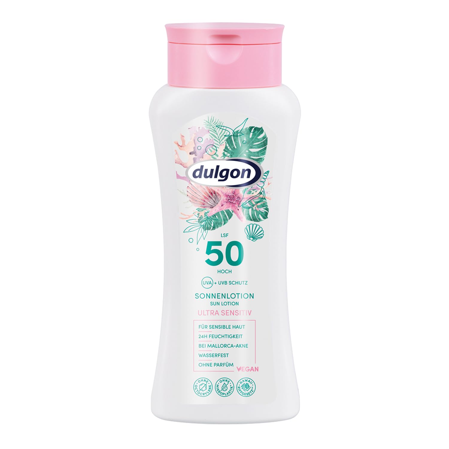 Dulgon Lotion solaire Ultra Sensitiv SPF 50 200 ml – Crème solaire sans octocrylène – Protection UVA UVB – Crème 50 imperméable, végétalienne et sans microplastique 1 pièce