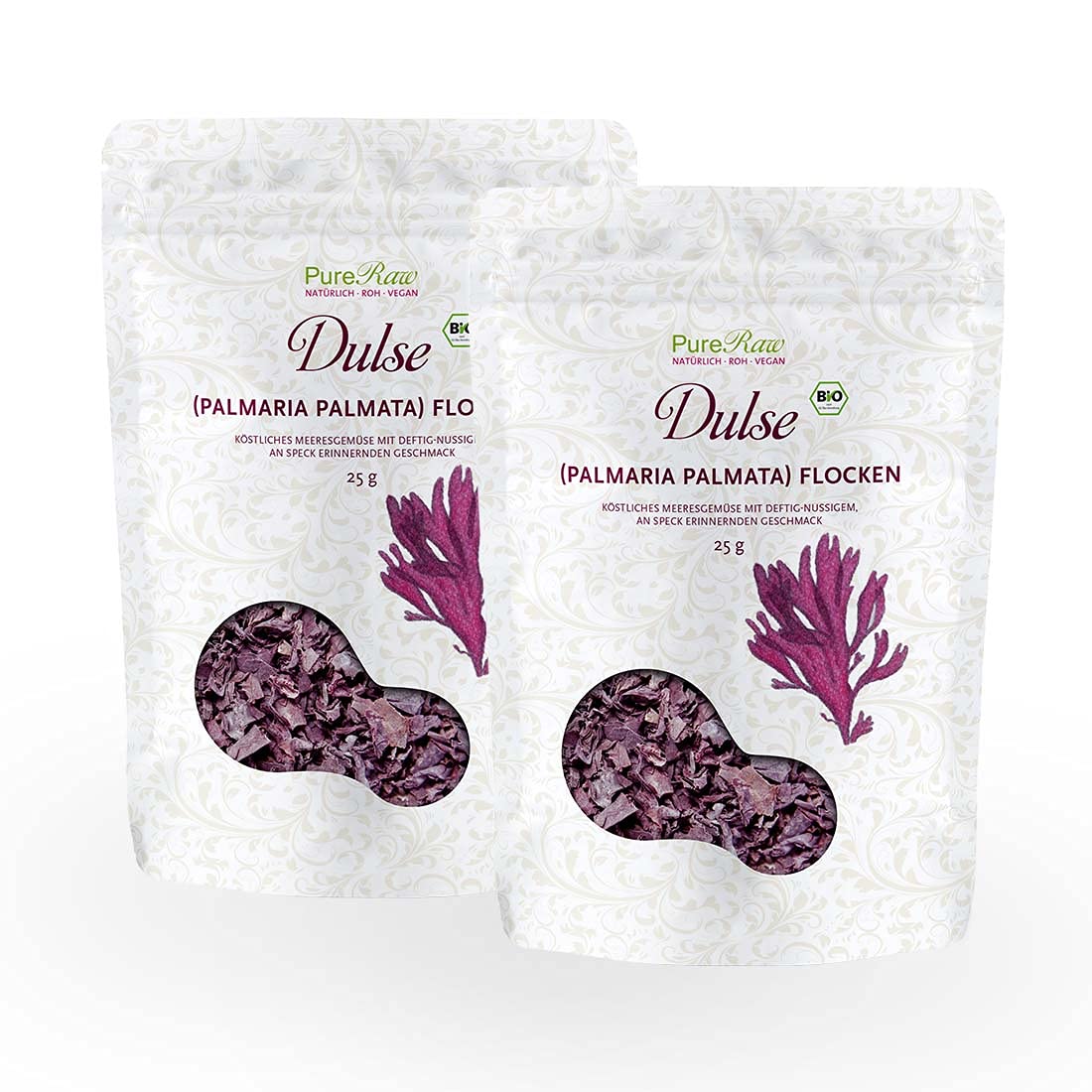 Trust in safe food: Pureeraw has been inspiring customers since 2010 with sustainable, natural, herbal, high -quality and innovative foods for more well -being and enjoyment.Quality, transparency and fairness are important to us.We deliver know-how and are pioneers in our field.We do not rely on the lowest offer, but on convincing and safe quality that you can trust!.Algae in everyday life: seatang flakes are easy to use and always ready for use - simply like topping or spice on the plate or in court, or nibble as a snack.The flakes can be used dryly from the bag, but can also be cooked in recipes.The re -lockable zipp bag enables the slight removal and keeps the algae fresh for a long time.Hearty taste for the refined kitchen: Dulse has a hearty, nutty, slightly smoky taste that is reminiscent of bacon.Estimated as a vegan bacon and herbal seasoning for meat substitute or vegan egg replacement!In vegetarian cuisine, Dulse delivers the Umami taste.Versatile rich in vital substances: Dulse flakes are nutritious and provide natural iodine.They are ideal for conscious seasoning instead of salting.Delicious in dashi broth, soup or miso, smoothie or bowl, to spice up bread, vegetables, sushi, algae noodles, tomato or celery juice.Mix the flakes into recipes as spicy salt spaces or sprinkle them directly on the plate.Also as a pure algae snack for nibbling like algae chips.✓ Premium quality: Atlantic dulse from the cold coastal waters in Europe, harvested by hand, dried gently.Bio-certified, raw, vegan, gluten-free, lactose-free, without additives.Bottled and controlled in Germany.Raw food quality: Due to the gentle processing at low temperatures, as many valuable ingredients remain as possible and our products are particularly high quality.Without additives such as separating agents, trickle aids, dyes, flavors or sweeteners.VERTRAUEN IN SICHERE LEBENSMITTEL: PureRaw begeistert Kunden bereits seit 2010 mit nachhaltigen, natürlichen, pflanzlichen, hochwertigen und innovativen Lebensmitteln für mehr Wohlbefinden und Genuss. Qualität, Transparenz und Fairness sind uns wichtig. Dazu liefern wir Know-How und sind Pioniere auf unserem Gebiet. Wir setzen nicht auf das niedrigste Angebot, sondern auf überzeugende und sichere Qualität, der du vertrauen kannst!. ALGEN IM ALLTAG: Seetang-Flocken sind leicht zu verwenden und immer einsatzbereit - einfach wie Topping oder Gewürz auf den Teller oder ins Gericht streuen, oder pur als Snack knabbern. Die Flakes können trocken direkt aus dem Beutel verwendet, aber auch in Rezepten gekocht werden. Der wiederverschließbare Zippbeutel ermöglicht die leichte Entnahme und hält die Alge lange frisch. DEFTIGER GESCHMACK FÜR DIE RAFFINIERTE KÜCHE: Dulse hat von Natur einen deftig-nussigen, leicht rauchigen Geschmack, der an Speck erinnert. Geschätzt als Vegan Bacon und pflanzliches Würzmittel für Fleischersatz oder veganen Eiersatz! In der vegetarischen Küche liefert Dulse die Umami-Geschmacksnote. VIELSEITIG VITALSTOFFREICH: Dulse-Flocken sind nährstoffreich und liefern natürliches Jod. Sie sind ideal zum bewussten Würzen statt Salzen. Köstlich in Dashi Brühe, Suppe oder Miso, Smoothie oder Bowl, zum Aufpeppen von Brot, Gemüse, Sushi, Algennudeln, Tomaten- oder Sellerie-Saft. Mische die Flocken als würzigen Salzersatz in Rezepte oder streue sie direkt auf den Teller. Auch als purer Algensnack zum Knabbern wie Algen-Chips. ✓ PREMIUM-QUALITÄT: Atlantic-Dulse aus den kalten Küstengewässern Europas, von Hand geerntet, schonend getrocknet. Bio-zertifiziert, roh, vegan, glutenfrei, laktosefrei, ohne Zusatzstoffe. In Deutschland abgefüllt und kontrolliert. Rohkost-Qualität: durch die schonende Verarbeitung bei niedrigen Temperaturen bleiben möglichst viele wertvolle Inhaltsstoffe erhalten und unsere Produkte besonders hochwertig. Ohne Zusätze wie Trennmittel, Rieselhilfen, Farbstoffe, Aromen oder Süßungsmittel.Dulse Flocken Bio Atlantik Algen (Wildsammlung Roh Vegan) Atlantischer Lappentang Rotalgen - Umami-Würze, Veganer Speck, Salzersatz - Organic Raw Wild Atlantic Seaweed Flakes PureRaw 50g ( 2x 25g) Dulse 2er-Pack Standard