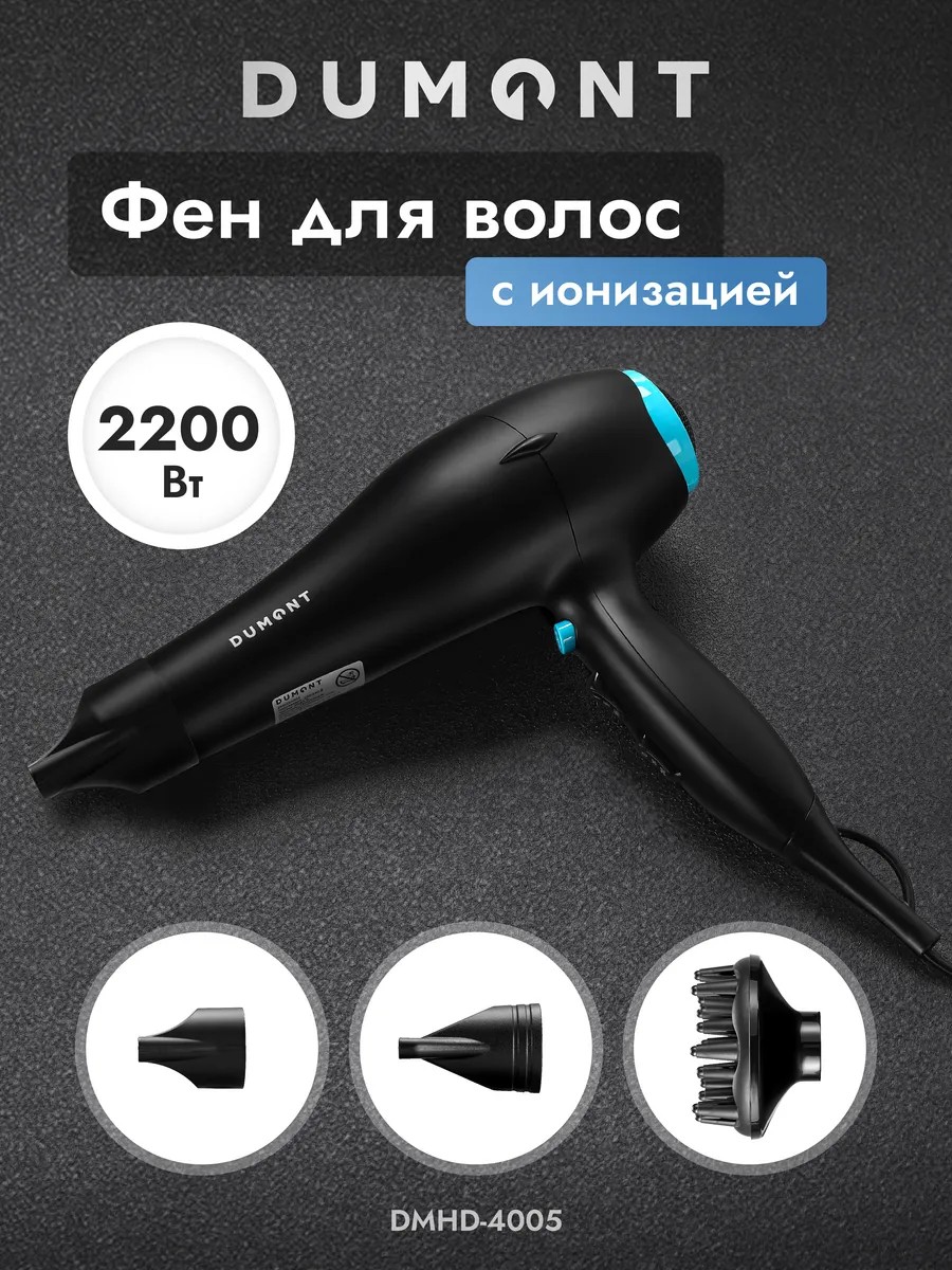 Фен для волос Dumont DMHD-4005 – это ваш идеальный помощник для создания профессиональной укладки прямо у себя дома. С мощностью 2200 Вт и профессиональным АС мотором, он обеспечивает быстрый, эффективный и бережный процесс сушки, а три температурных и два скоростных режима позволяют адаптировать его под любой тип волос.