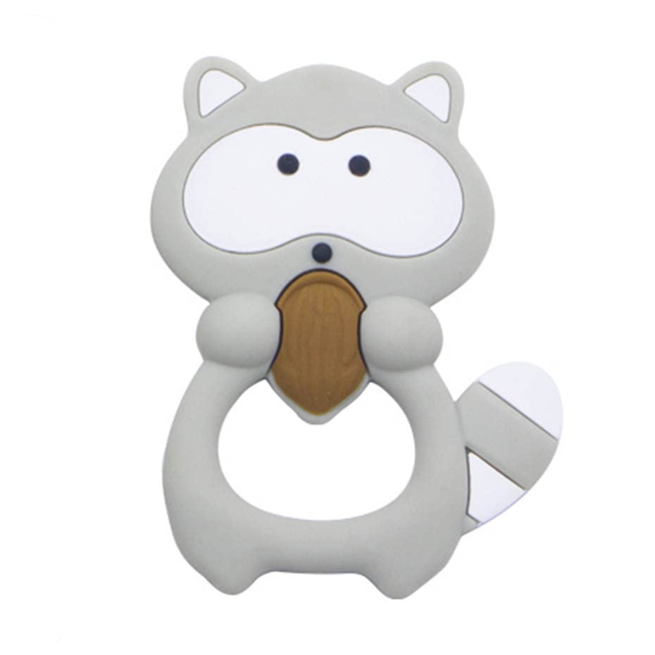 Duperior Waschbär Beißring für Babys - Zahnungshilfe aus Silikon BPA und PVC frei- Einfach zu Reinigen - Grau