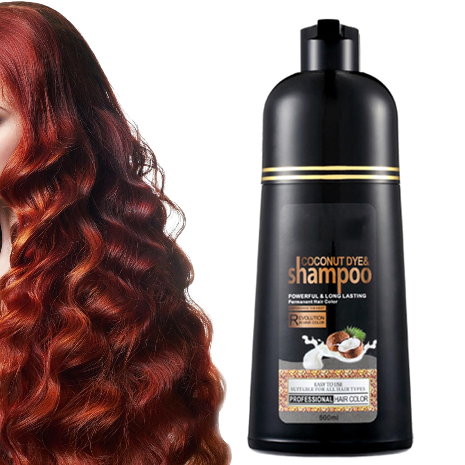Shampooing instantané à base de noix de coco - Ingrédients naturels à base de plantes - Coloration rapide - Couvrance à l'huile de coco - Durable - Sans décoloration - Protège les cheveux - 500 ml rouge bordeaux