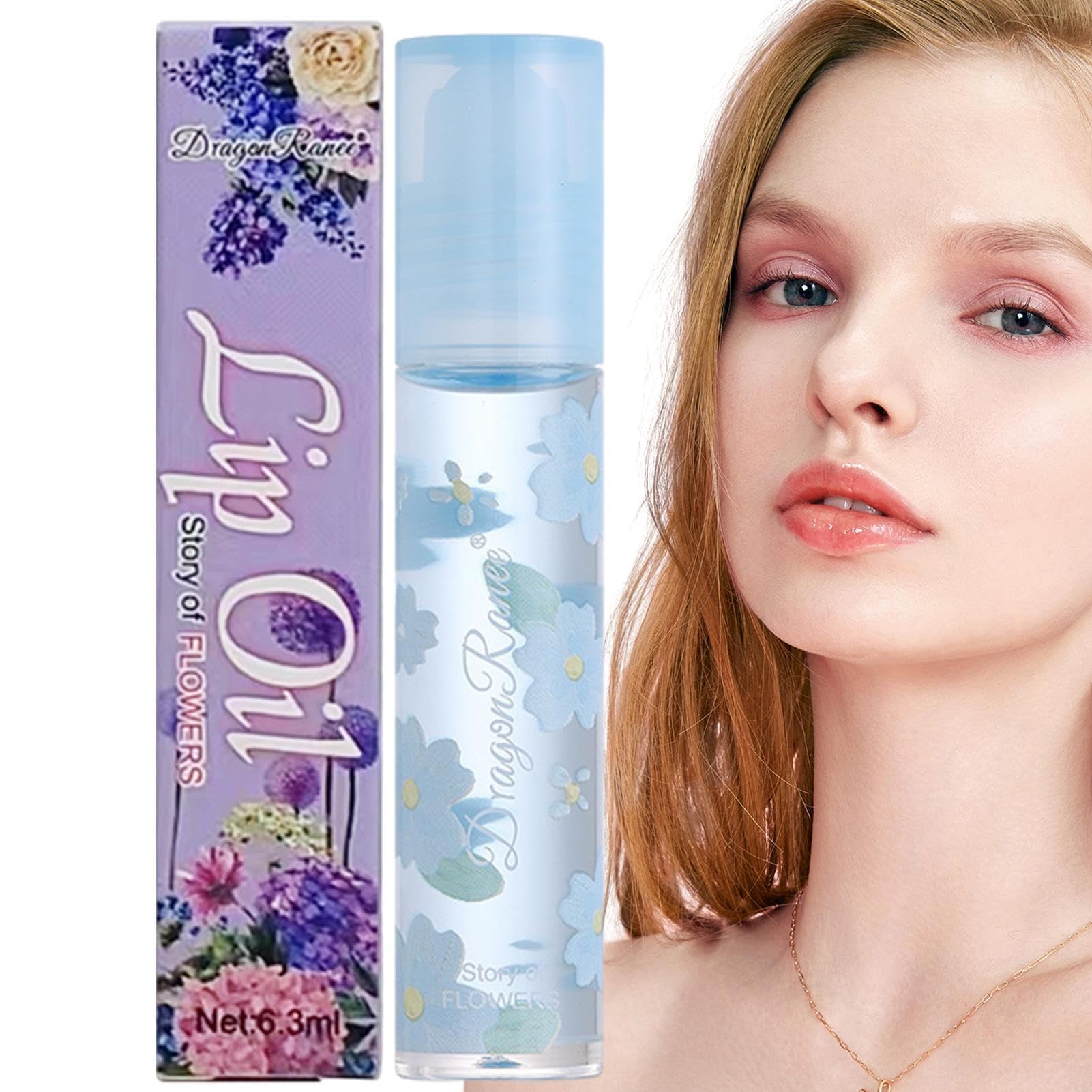 Roll Lip Oil - 0,21 oz Cute Roll Baume à lèvres à l'huile florale hydratante - Baume à lèvres transparent nourrissant avec fleurs pour cadeau d'anniversaire Duqulle
