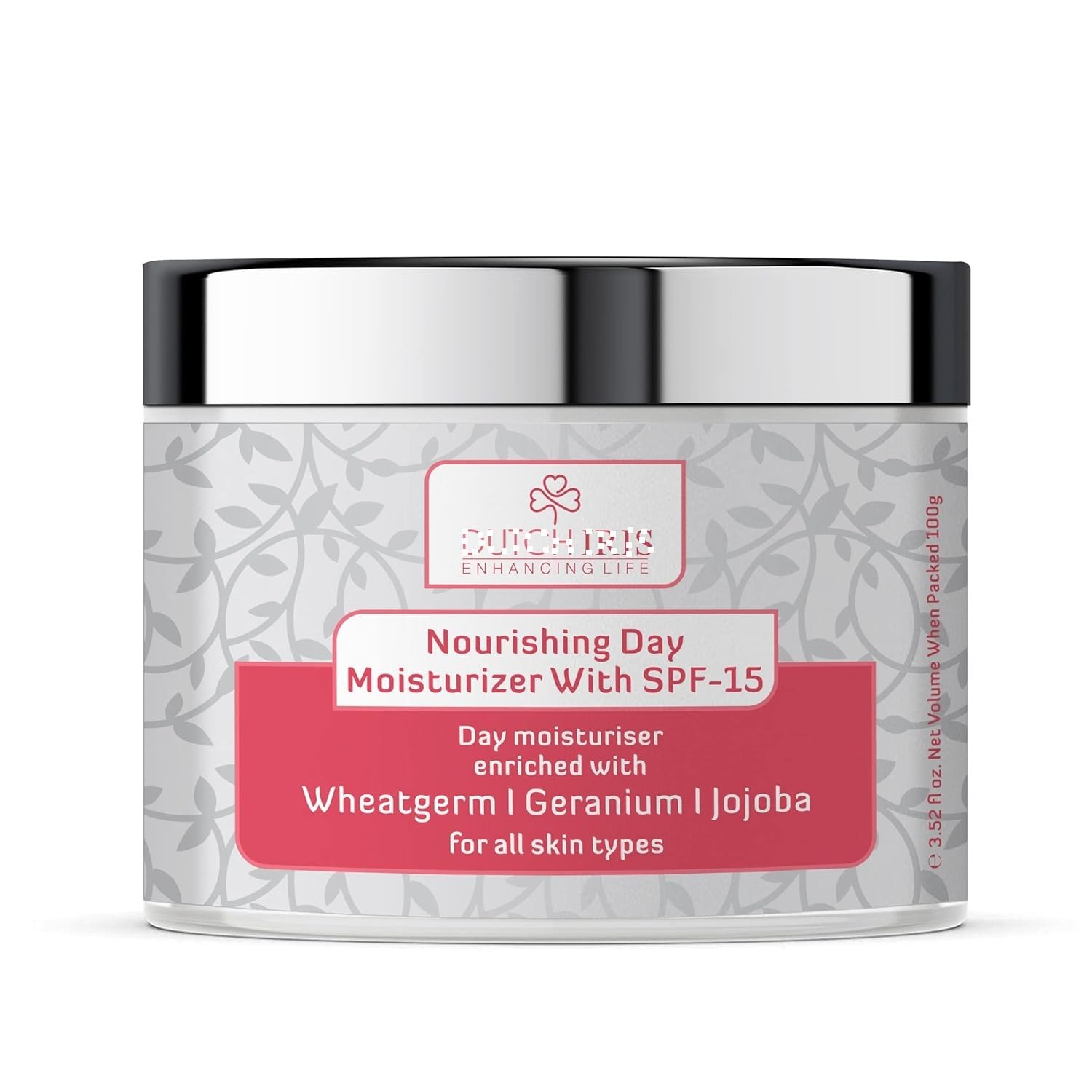 Dut'ch I'ris Nourishing Day Moisturiser with SPF-15 | Wheatgerm Geranium & Jojoba Extracts | Broad Spectrum Protection | For Women & Men (Unisex) | 100gms
