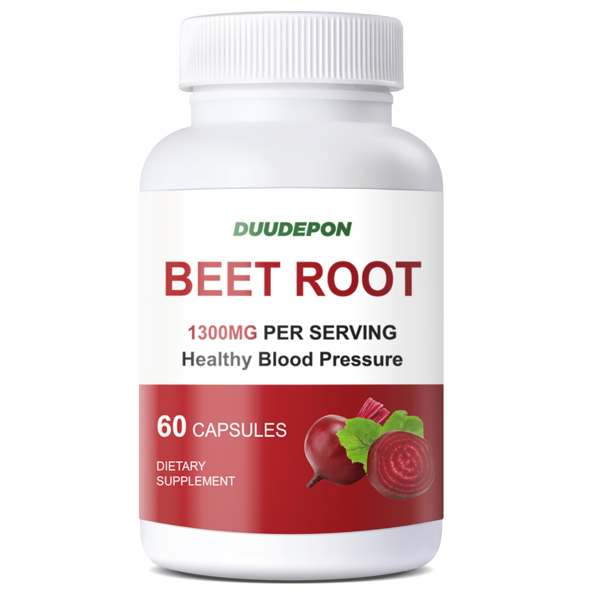 DUUDEPON Organic Beet Root Capsules - 1300mg per Serving - Supports Natural Energy Endurance - Vegan - 60 Capsules