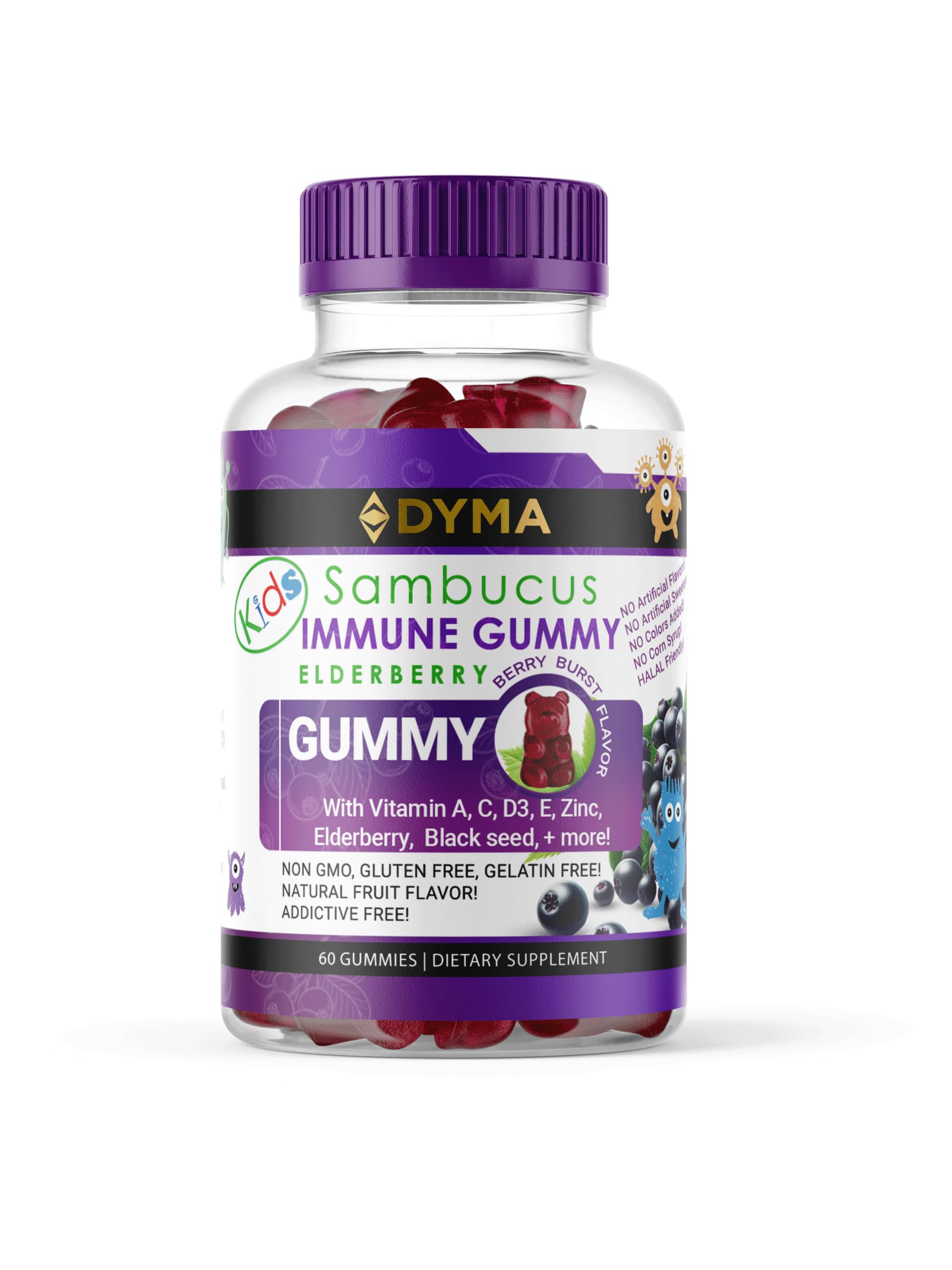 DYMA is pleased to share our advanced Immune Elderberry Gummy for adults! Our latest formula with Black seed oil and more! . No Artificial Flavors, No Artificial Sweeteners, No Colors Added!, No Corn Syrup!, HALAL Friendly!. For children 4 , chew 1 gummy daily. Children ages 13 , chew 2 gummies daily. DYMA Gummies are delicious and kid friendly! It's the perfect immune support for back to school, winter season, and all year long. . Elderberries naturally contain anthocyanins, which provide antioxidant support. Antioxidants help neutralize free radicals. Elderberries have been used for centuries for traditional immune support. . DYMA Elderberry Gummies for Kids for ages 4 provides immune support with a blend of an excellent source of Vitamin A, C, D3, E, Zinc, Black Elderberry, Black Seed Oil, with 60 . .