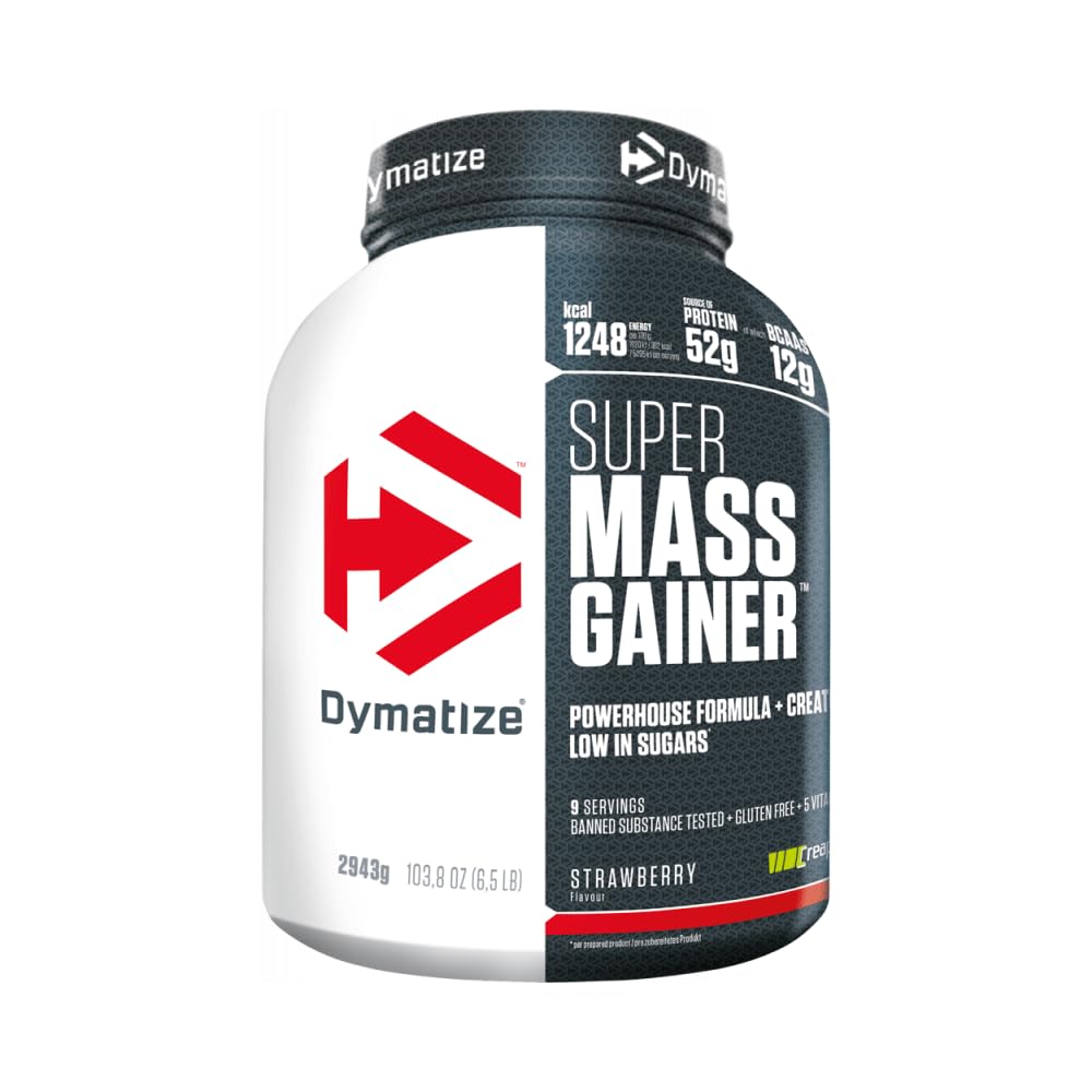 : Dietary supplement for building muscle mass. Carbohydrates, essential fatty acids from sunflower oil, and high-quality protein with plenty of BCAAs provide a good composition for muscle building. Whey protein, micellar casein, and egg albumin help develop muscle mass. Take 327g with 700ml of water or milk, after exercise or as a snack, 1-3 times daily (start with half portions initially). Available in 2 sizes and various delicious flavors. Ingredients: Maltodextrin, MILK PROTEIN (MILK PROTEIN, MILK PROTEIN ISOLATE, WHEY PROTEIN HYDROLISATE, MICELLAR CASEIN), sunflower oil, creatine monohydrate, flavorings, color (Betanin), emulsifier (SOY LECITHIN, mono- and diglycerides of fatty acids), thickener (Cellulose, Xanthan gum, Carrageenan), flavor enhancer (potassium chloride), sweetener (acesulfame potassium, sucralose), release agent (silicon dioxide), ascorbic acid, nicotinamide, D-calcium pantothenate, pyridoxine HCl, folic acid. Ingredients: Maltodextrin, MILK proteins (20 ) (MILK proteins, WHEY protein concentrate (MILK), WHEY protein isolate (MILK), protein hydrolysate of WHEY (MILK), MICELLAR CASEIN), sunflower oil, creatine monohydrate (1 ), flavouring, colour (beetroot red), emulsifiers [lecithins (contains SOY), mono- and diglycerides of fatty acids], thickeners (cellulose gum, xanthan gum, carrageenan), flavour enhancer (potassium chloride), sweeteners (acesulfame-K, sucralose), anti-caking agent (silicon dioxide), ascorbic acid (vitamin C), nicotinamide (niacin), calcium D-pantothenate (pantothenic acid), pyridoxine hydrochloride (vitamin B6), folic acid. P.when('A').execute(function(A) { A.on('a:expander:toggle_description:toggle:collapse', function(data) { window.scroll(0, data.expander. expander[0].offsetTop-100) }) }) Instructions for use: Recommended daily intake: 1 serving. Disclaimer: Food supplements are not a substitute for a balanced and varied diet. See moreDescription du produit Description du produit Complément alimentaire pour la construction de la masse musculaire. Les glucides, les acides gras essentiels de l'huile de tournesol et les protéines de haute qualité avec beaucoup de BCAA fournissent une bonne composition pour la construction de masse. La protéine de lactosérum, la caséine micellaire et l'albumine d'œuf aident à développer la masse musculaire. Prendre 327 g avec 700ml d'eau ou de lait, après l'exercice ou en collation 1-3 fois par jour (commencez avec des demi-portions au début). Disponible en 2 tailles et différentes saveurs délicieuses. Ingrédients Maltodextrine, PROTÉINE DU LAIT (PROTÉINE DE LAIT, ISOLAT PROTÉIQUE DU LAIT, PROTEINHYDROLISATE DE LACTOSÉRUM, CASÉINE MICELLAIRE), huile de tournesol, Créatine monohydrate, arômes, colorant (Betanin), émulsifiant (LÉCITHINE DE SOJA, Mono- et diglycérides d'acides gras), épaississant (Cellulose, Xanthane, Carrageenan), exhausteur de goût (chlorure de potassium), édulcorant (acésulfame de potassium, sucralose), agent de démoulage (dioxyde de silicium), acide ascorbique, nicotinamide, pantothénate de D-calcium, pyridoxine HCL, acide folique Ingrédients Maltodextrine, protéines de LAIT (20 ) (protéines de LAIT, concentré de protéines de LACTOSÉRUM (LAIT), isolat de protéines de LACTOSÉRUM (LAIT), hydrolysat de protéines de LACTOSÉRUM (LAIT), CASÉINE MICELLAIRE), huile de tournesol, monohydrate de créatine (1 ), arôme, colorant (rouge de betterave), émulsifiants [lécithines (contient SOJA), mono- et diglycérides d'acides gras], épaississants (gomme cellulosique, gomme xanthane, carraghénanes), exhausteur de goût (chlorure de potassium), édulcorants (acésulfame-K, sucralose), anti-agglomérant (dioxyde de silicium), acide ascorbique (vitamine C), nicotinamide (niacine), D-pantothénate de calcium (acide pantothénique), chlorhydrate de pyridoxine (vitamine B6), acide folique. P.when('A').execute(function(A) { A.on('a:expander:toggle_description:toggle:collapse', function(data) { window.scroll(0, data.expander. expander[0].offsetTop-100) }) }) Mode d'emploi Consommation recommandée par jour : 1 portions. Clause de non-garantie Les compléments alimentaires ne remplacent pas une alimentation équilibrée et variée. Voir plusDymatize Super Mass Gainer Glucide Fraise 2,9 kg - Poudre Weight-Gainer Glucides BCAA et Caséine
