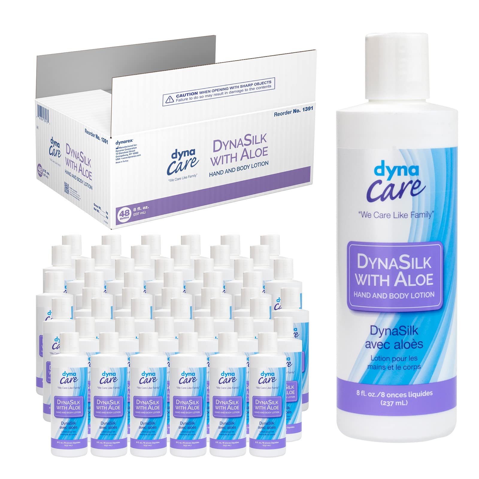 Dynarex DynaSilk with Aloe - Moisturizing Hand & Body Lotion for Dry Skin - Non-Greasy with Refreshing Scent - For All Skin Types - 8 oz. 48 Bottles per Case