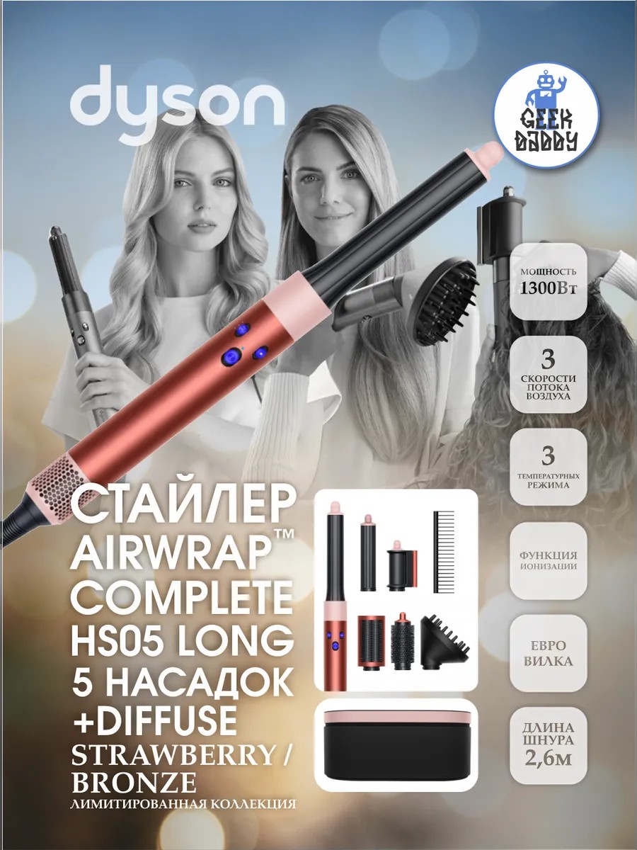 Dyson фен Airwrap complete long HS05 Diffuse — это настоящий мастер укладки волос. С его помощью вы с легкостью создадите именно тот стиль, о котором мечтали: волнистые волосы, идеально прямые с помощью разглаживающей насадки Coanda или пышные, красивые кудри.