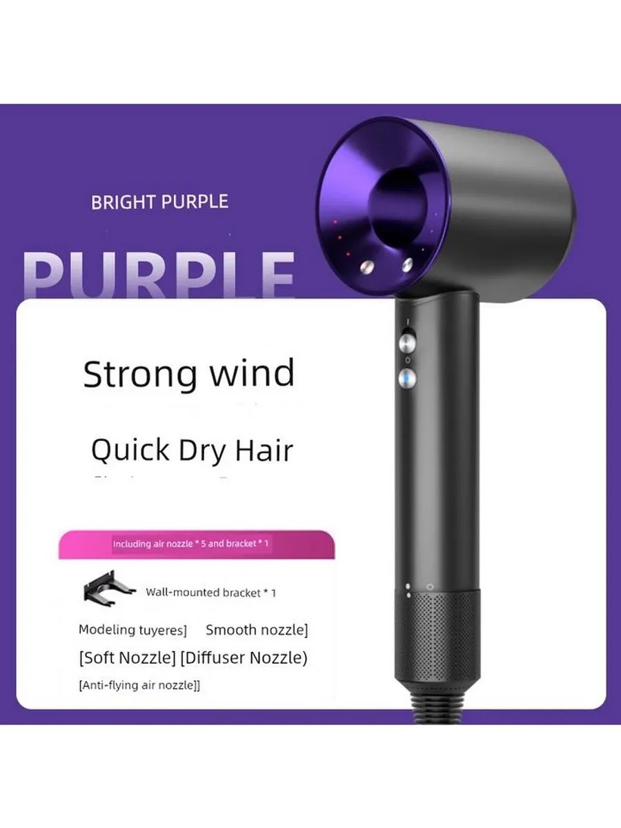 DYSSLIN G5-1-10 Hair Dryer (1400 W, 3 modes, temperature control, 1.8 m cord, Bright Purple, five attachments)