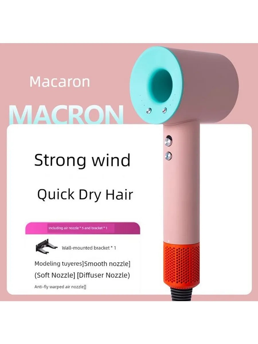 DYSSLIN G5-1-10 Hair Dryer (1400 W, 3 modes, temperature control, 1.8 m cord, Macaron color, five attachments)