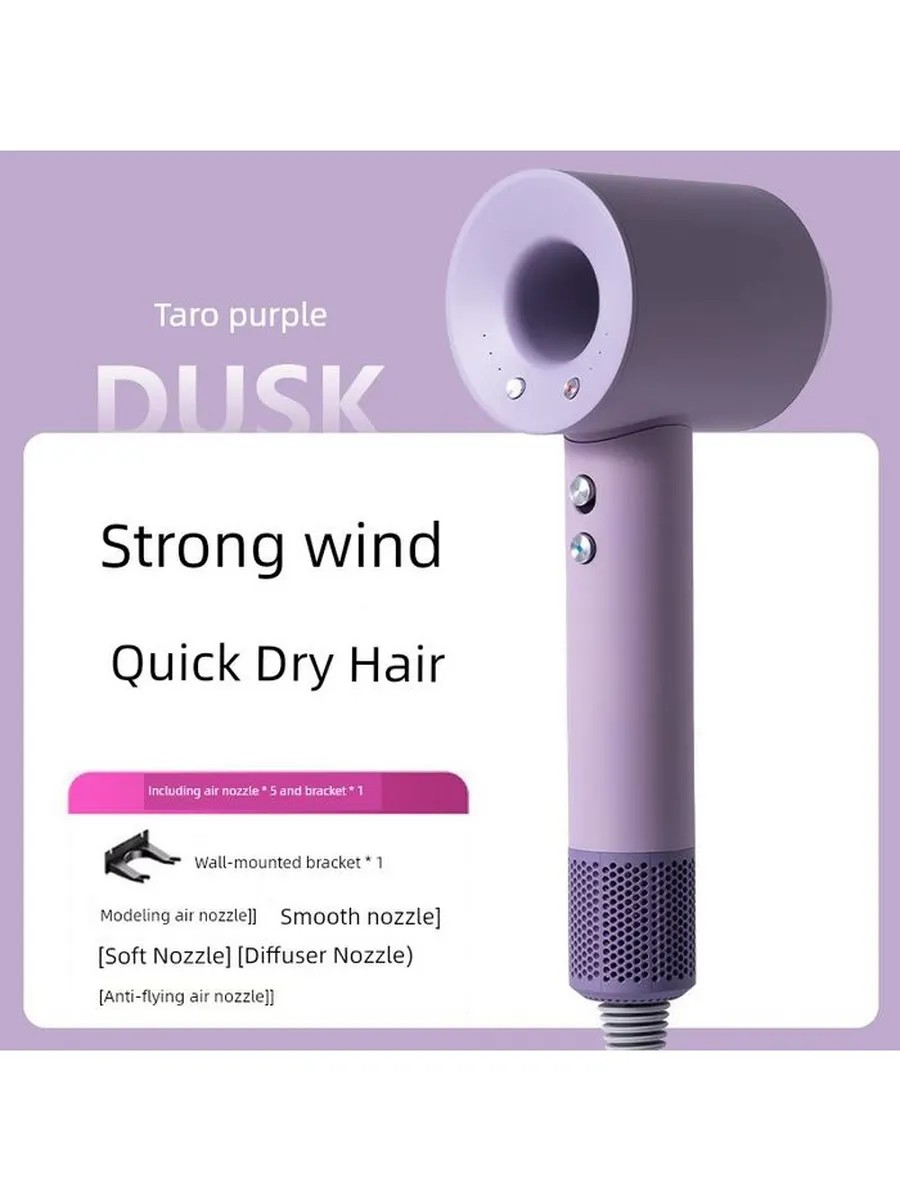 DYSSLIN G5-1-10 Hair Dryer (1400 W, 3 modes, temperature control, 1.8 m cord, Mysterious Purple color, five attachments)