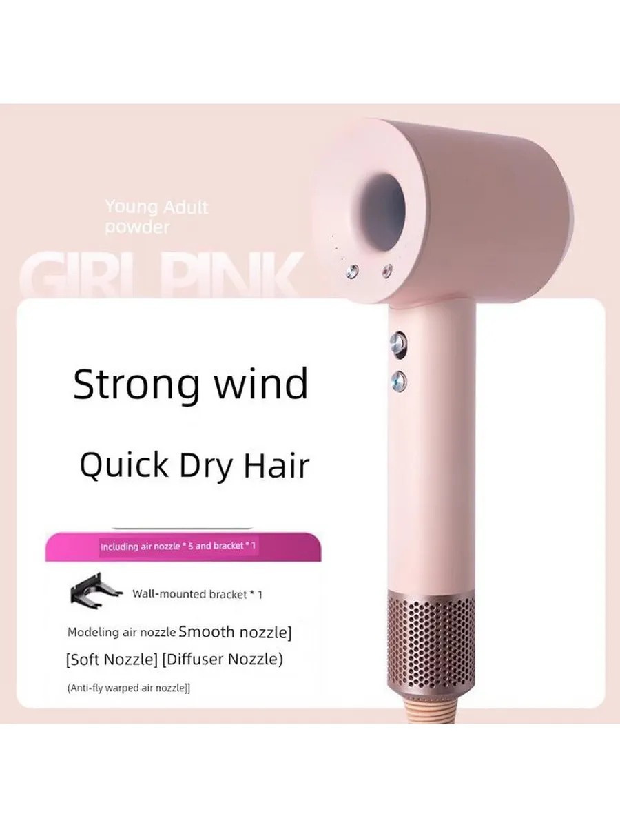 Фен DYSSLIN G5-1-10 (1400 Вт, 3 режима, контроль температуры, 1.8м шнур, цвет Молодежный порошок, пять насадок)