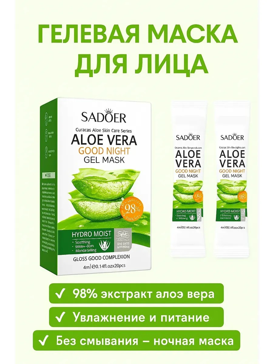 Гелевая маска для лица SADOER Aloe Vera Good Night Gel Mask — это идеальное решение для ночного ухода за кожей.