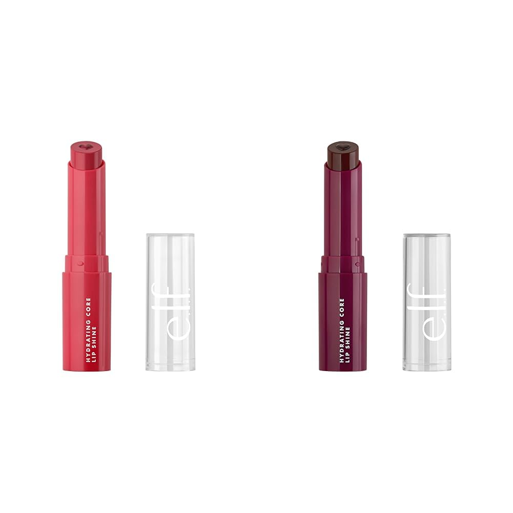 This lip care bundle includes two 0.09 oz e.l.f. Hydrating Core Lip Shines in complementary shades of Lovely (Light Red) and Ecstatic (Deep Berry). Both provide sheer color with soft shine while nourishing lips with a heart-shaped core infused with vitamin E. The 2-in-1 formula combines a tinted outer shell with an inner moisturizing core to deliver hydration and a pop of color in one swipe. Key ingredients like vitamin E condition and nourish for smooth, supple lips. With eight shades to choose from, you can find a perfect match or mix and match for a customized lip look. The hydrating core lip shine adds both color and skincare benefits. Infused with antioxidant vitamin E, the inner core helps moisturize dry, chapped lips while the sheer tinted outer shell flatters your natural lip tone. This duo includes both a lighter and deeper shade to take you from day to night. Flaunt soft, kissable lips around the clock with this nourishing and conditioning lip care bundle.