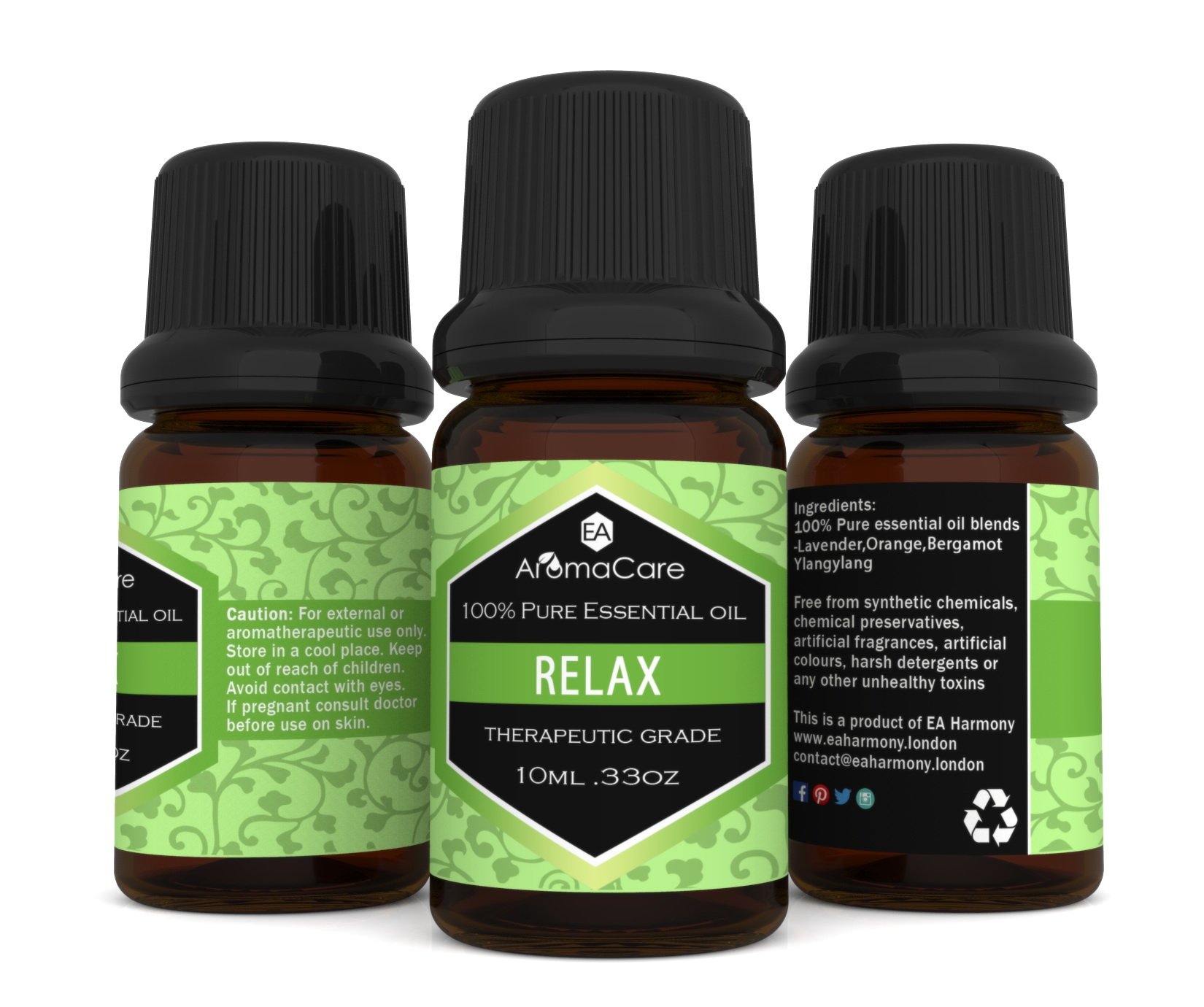 Longer term stress leads to anxiety and depression and the onslaught of stress response hormones lead to heart attacks, diabetes, and strokes. Incregly, scientists are convinced that one of the most important things we can do, to prolong our lives, is to reduce the amount of stress we subject ourselves to every day! Interestingly, we all perceive stress differently and to a large extent our history and upbringing will dictate how we imagine how dangerous, difficult, or painful a situation can be. It is when we don't believe we have the resources to cope, that stress begins to overwhelm us, and we spin out of control spurting deleterious neurotransmitters around the body and attacking our heart. It's time to scream "Stop" and essential oils are the perfect way to slam on the brakes. As the mind is cleared of distractions, new thought processes take their place. Pictures form and ideas emerge, fostering creativity and imagining new solutions you may not have seen before. This exquisite blend of oils offers a delectable treat to gently brush off the day and ease you into a serene bubble of calm Breathe… Add to a Diffuser: Use in an electric or vapour diffuser, or if you don't have one available, a couple of drops in a bowl of warm water will charge the atmosphere a treat. Without a diffuser though, just make sure you keep that water warm to allow the heat to evaporate the molecules into the air, and keep out of the reach of children. Create Your Own Massage Oil: Use just two drops of EA AromaCare Relax blend into a tablespoon of carrier oil to create a lovely treat for an adult. Should you want to sooth a youngster, use two tablespoons for a child. Not suitable for children under 6 months old.Let the aromatic molecules dance around you, balancing neurochemistry, relaxing your mind, calming physical processes and releg a stronger, more resolved you. Slowing the breathing and reducing heart rate, it centres you, steading your emotions and settling your resolve.It calms the mind, allowing to you to prioritise and assess situations objectively. Rationality is restored, asking you to review situations and steel your resolve. Aromatherapyblends are always more than the sum of their parts. Each oil mingles and enhances the properties of the others and Relax has been expertly blended to combine the optimum chemical ratios for the most blissful and relaxing effect. Relax! With the gorgeous EA Aromacare blend of lavender, orange, bergamot ylang ylang.