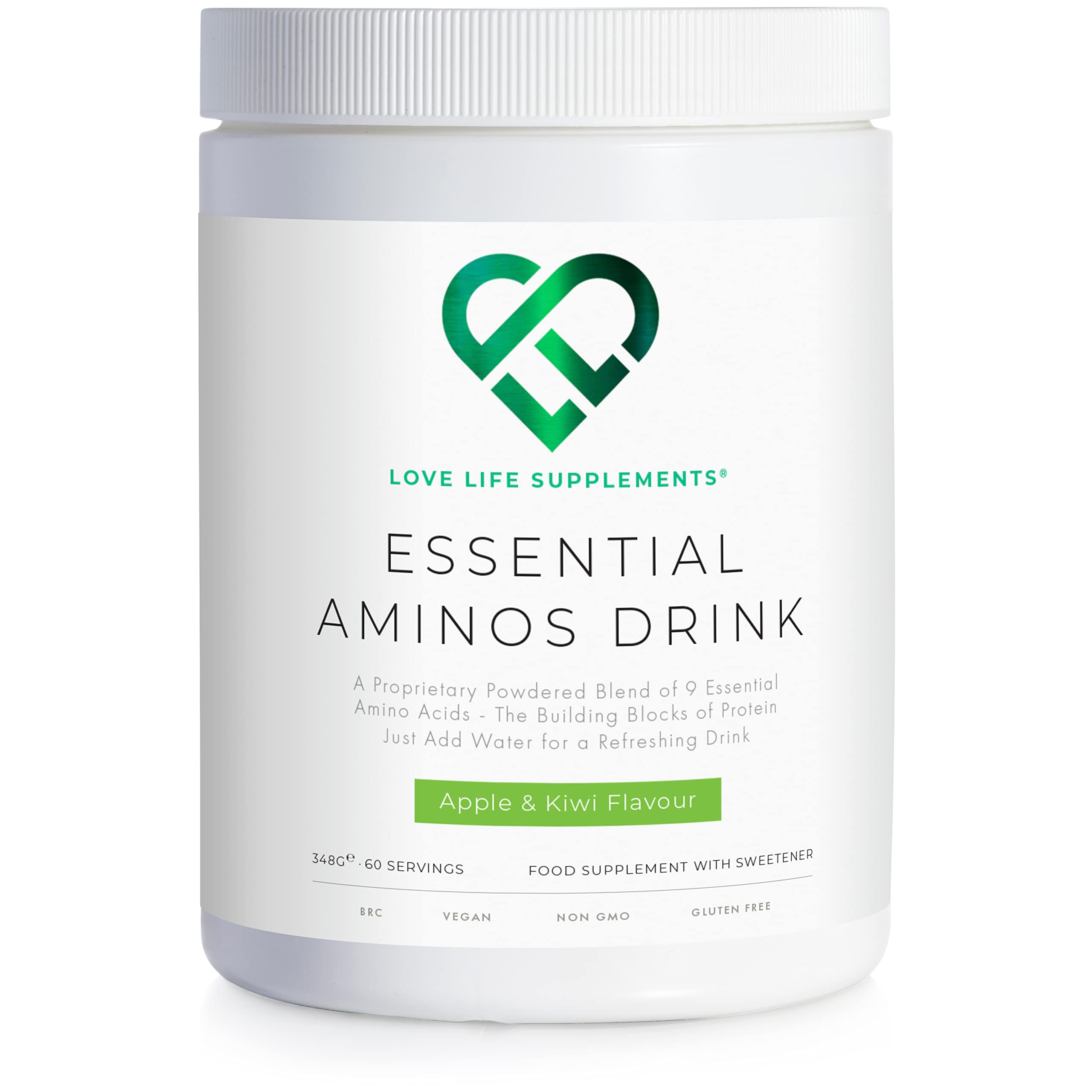 EAA Amino Acids Powder | All 9 Essential Amino Acids Including BCAA's and 2 Grams of Leucine per Serving | Apple & Kiwi Flavour | 348g - 60 Servings (5g of EAA's per Serving) | Love Life Supplements