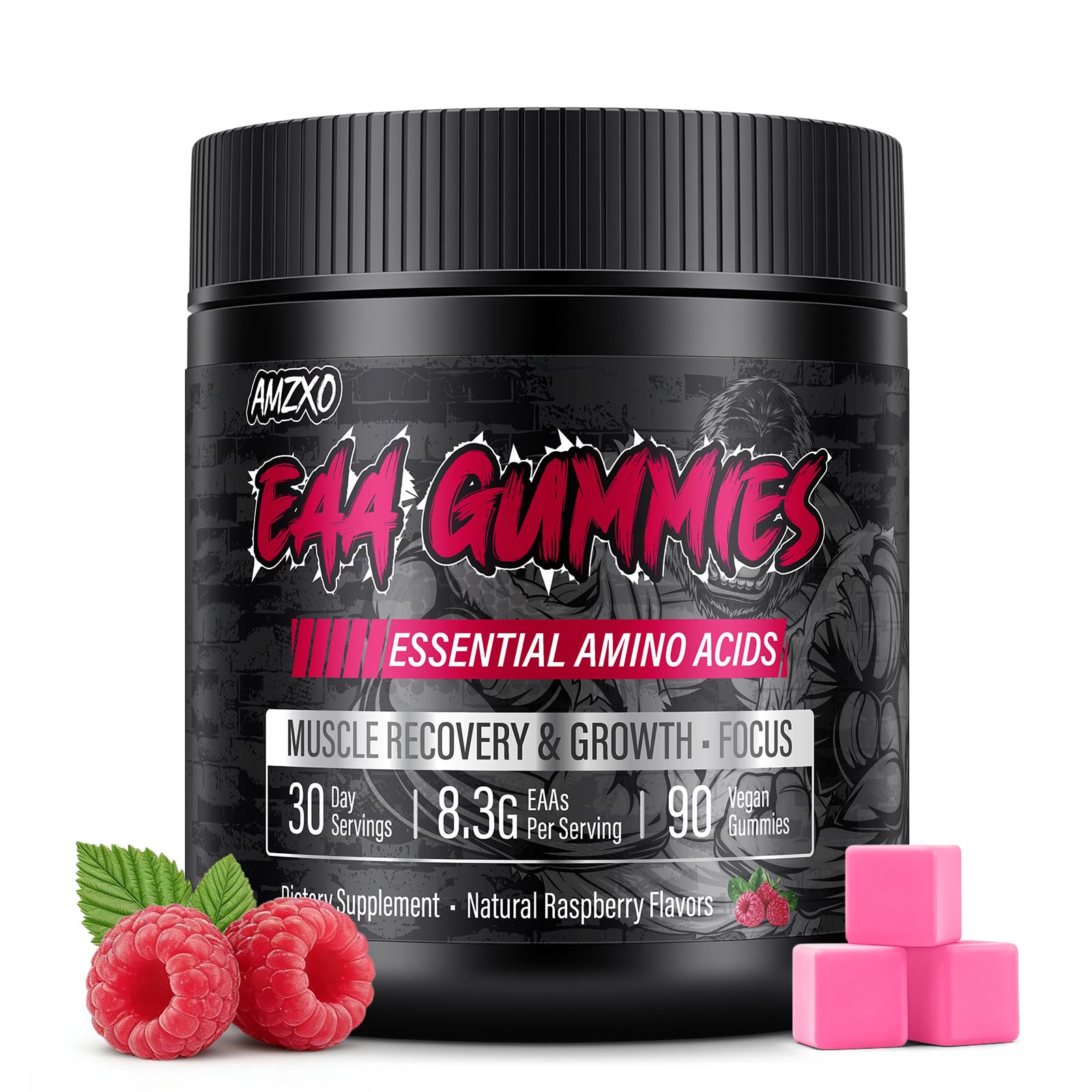 EAA Gummies - 2:1:1 BCAA Formula (8300mg) - Essential Amino Acids for Muscle Recovery & Endurance - Non-GMO Gluten Free Sugar Free Vegetarian Raspberry Flavor - 90 Count