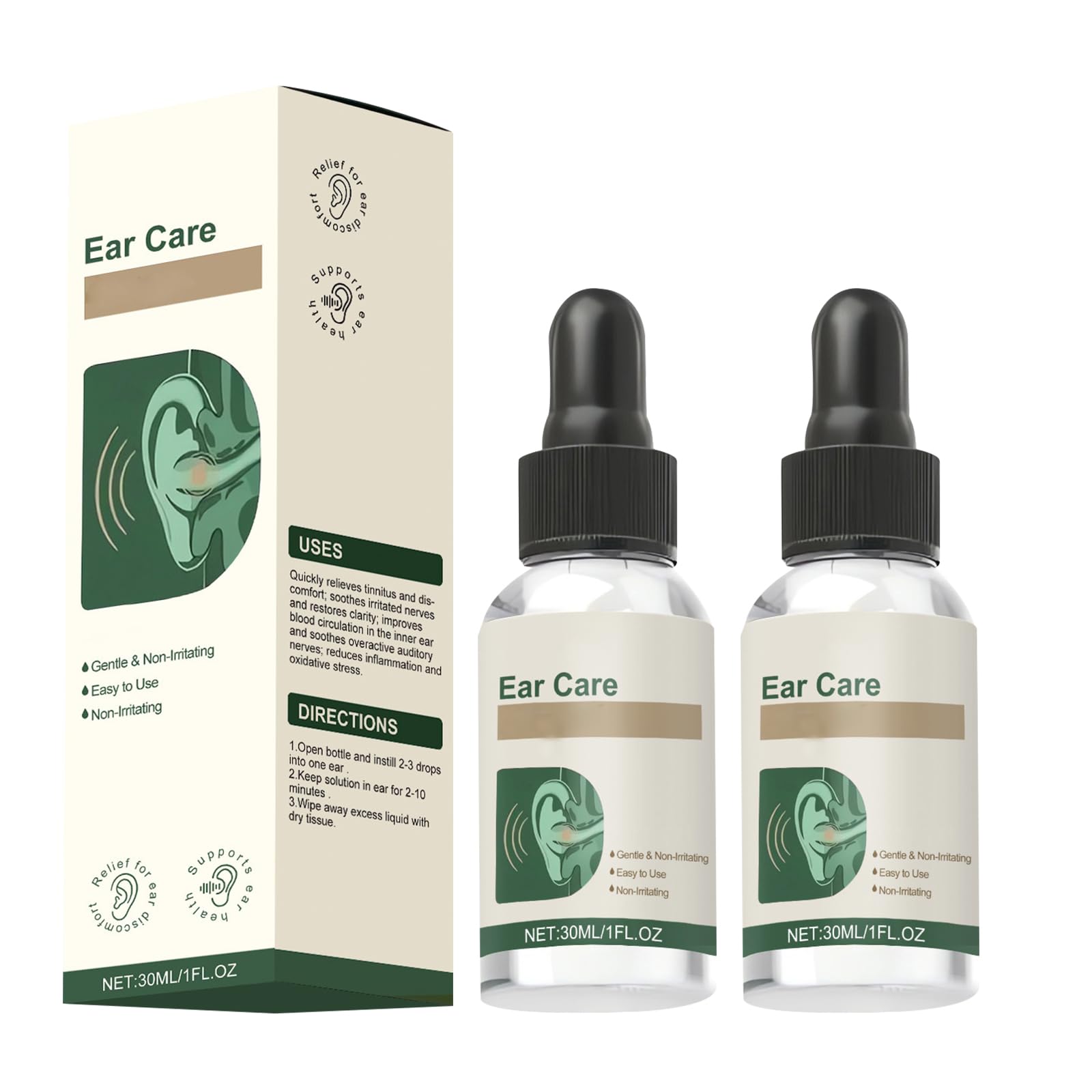 Ear Care Drops Gentle Formula Natural Ingredients Relieve Tinnitus by Unblocking Secretions Easy to Use & Portable for Men & Women for Daily Ear Hygiene(2PCS)