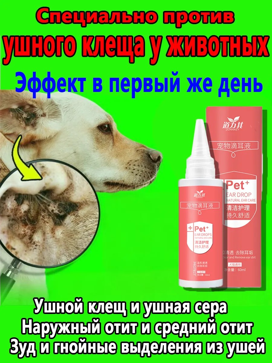 Ушные капли от бактерий и клещей для собак и кошек