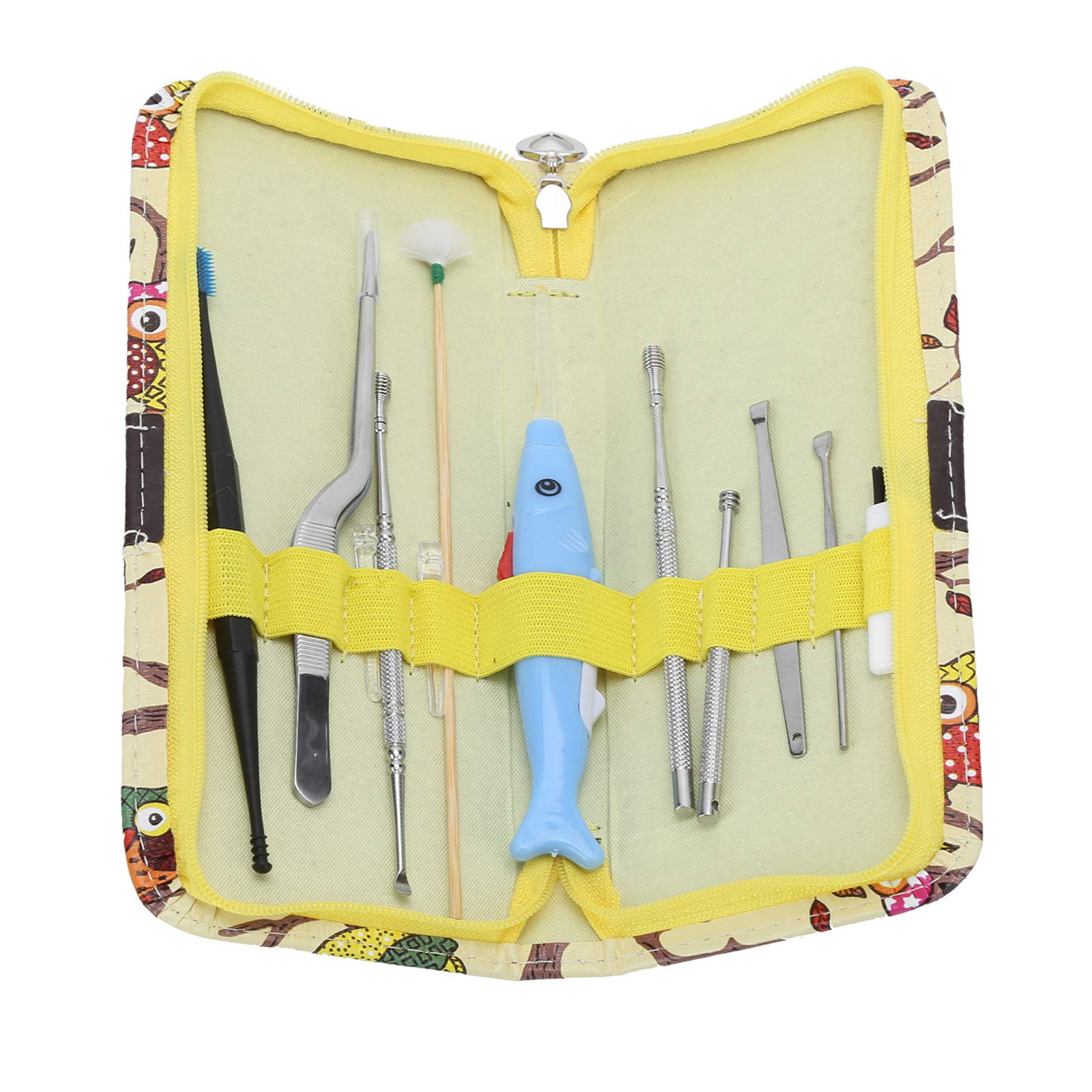 material, delicate storage box, convenient storage, comfortable using experience. Silicone ear pick, massage the ear canal to remove residual earwax that sticks to the wall of the ear canal. Multidirectional Cleaning, different ear-picking tools that can be used to clean earwax from ear holes. Luminous ear pick, with light source to make the ear hole visible, the parts can be replaced, more convenient to use. Suitable for use both at home and office, convenient and easy to carry with you.