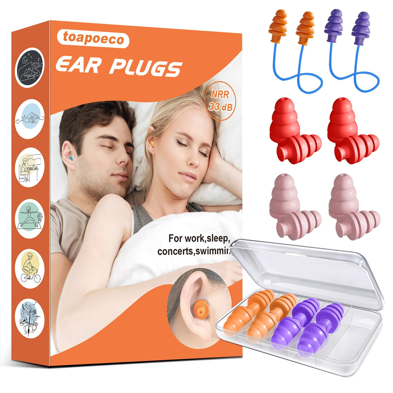 Ear Plugs for Sleeping Noise Cancelling Reusable Earplugs for Sleeping Concert Snoring Travel Comfortable Type 33dB Highest NRR 8 Pairs 4 Colors5