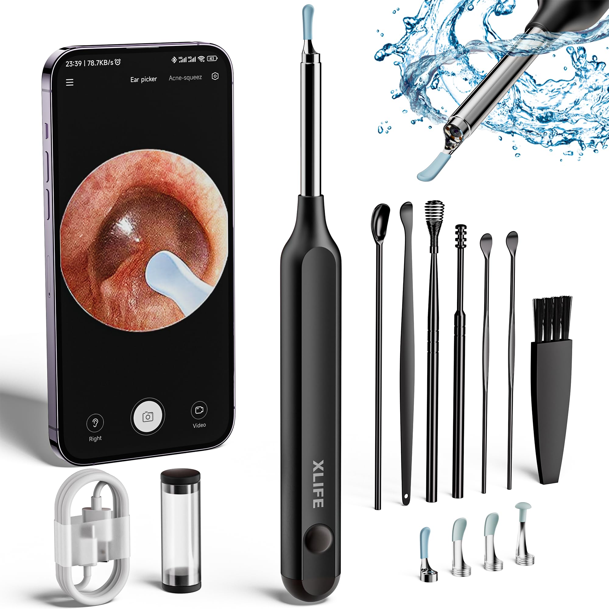 Package List Friendly Service The Ear Wax Removal Kit includes the Ear Cleaner With Camera and Light, 5 Silicone Ear Spoons, 1 Earplug Cover Storage Box,1 Charging Cable,and an Instruction Manual. We provide a 12-month warranty for our ear wax removal kit. If you encounter any issues, please contact our dedicated after-sales service team, and we will promptly resolve them within 12 hours. 3 Types of Ear Spoon The ear spoons are made of super soft silicone, which will not hurt your ear canal if used for a long time. Before use, please pay attention to tightly fit the silicone ear scoop on the ear scoop. Each ear spoon is suitable for removing different types of earwax. Additionally, the fixed spiral design securely attaches the ear spoons to the metal handle, ensuring stability during use and reducing the risk of ear scoops falling into the ear canal. Rechargeable IP67 Waterproof The ear cleaner with camera is rechargeable and environmentally friendly, allowing you to charge it anytime. The built-in 130mAh battery provides up to 90 minutes of continuous usage. Its IP67 Waterproof Lens allows easy cleaning by washing the camera, ear spoon, and LED lights with water or wiping them with alcohol cotton after use. It's a must-have tool for maintaining family health and an excellent gift choice for elders, family and friends. Support Android IOS Devices The ear wax removal tool offers a user-friendly experience compatible with both iOS and Android devices through WiFi connectivity. Simply scan the QR code to download the app. Despite its WiFi connectivity, our ear wax cleaner doesn't access your personal data. All photos and videos are retained within the app, If you wish to save them in your phone album, please grant the app access to your album. Smart Visual Ear Wax Removal Tool The ear wax removal tool camera is equipped with a 1296P HD camera and 6 super bright LED Lights to provide you with a clearer picture of your ear canal, making it easy to spot the location of earwax and go about removing it. The built-in 3 axis gyroscope design ensures the stability of the picture transmission during the cleaning process, and the picture will not shake even when rotating. Provides a convenient way to check the health of your ears.