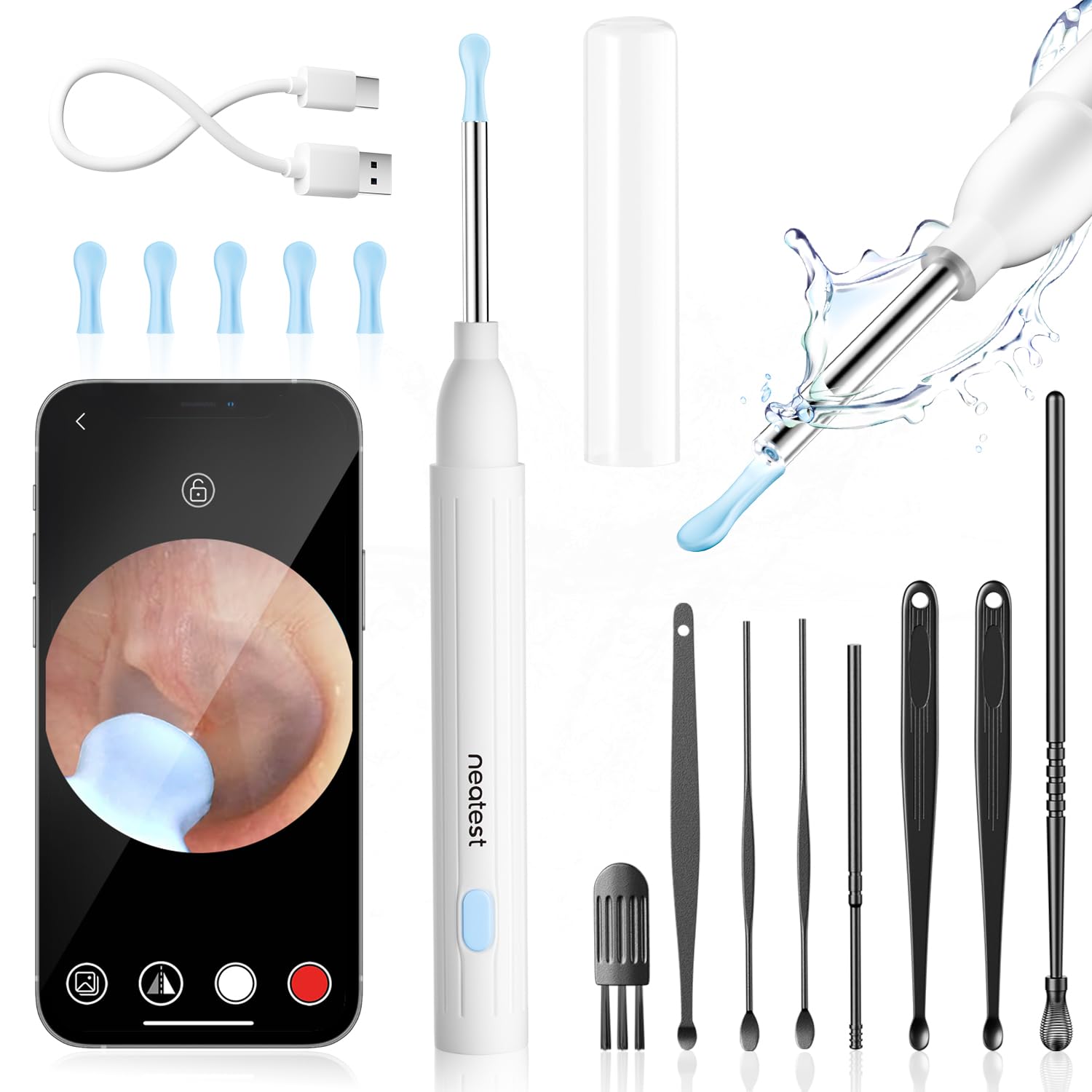 IP67 Waterproof Easy to Clean: Designed with IP67 waterproof performance, the lens and ear spoons can be rinsed with water or wiped with alcohol for hygienic use. Suitable for checking ears, nose, scalp, and other visible areas. Extended Battery Life with 350mAh Rechargeable Battery: Powered by an upgraded 350mAh battery, this ear wax removal camera provides up to 90 minutes of continuous use and up to 30 days of standby time, reducing the need for frequent charging. Smart Ear Cleaner for iOS Android Devices: This ear cleaner with camera connects via one-touch WiFi to your smartphone. View real-time images, capture photos and videos, and store them in the app for easy ear health monitoring over time. Customizable Safe Earwax Removal Kit: Includes 5 silicone ear spoons with different curvatures for a personalized and comfortable fit. Soft silicone tips help prevent scratching the ear canal, making this ear cleaning kit suitable for adults and first-time users. Advanced 1296P HD Ear Camera with 360 View: This ear wax removal tool with camera features a 1296P high-definition lens and 6 LED lights, delivering a clear 360 wide-angle view of the ear canal. Easily monitor and remove earwax with precision and confidence.