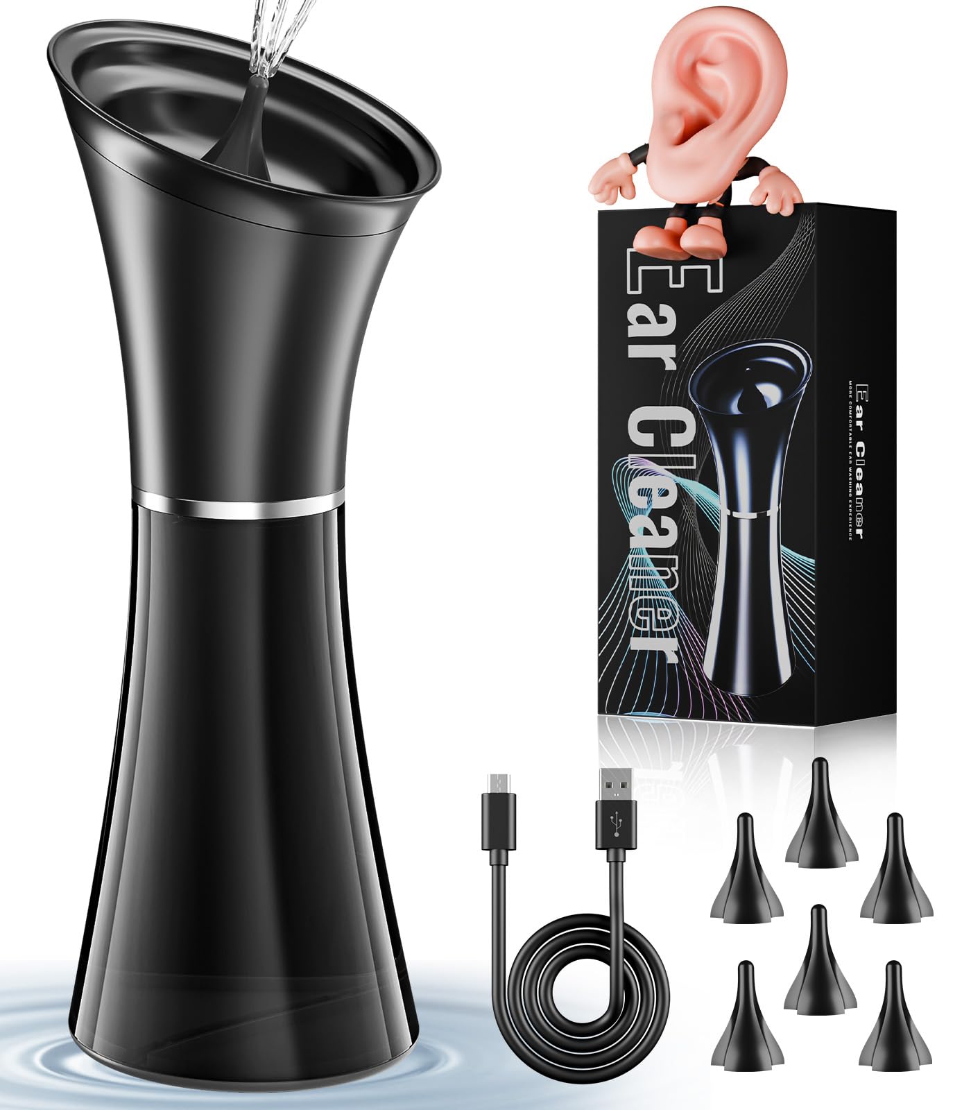 Ear Wax Removal - Electric Ear Cleaner with IPX7, Ear Cleaning Kit Effective & Safe Ear Wax Cleaner Irrigation Flushing System,4 Pressure Modes,6 Tips