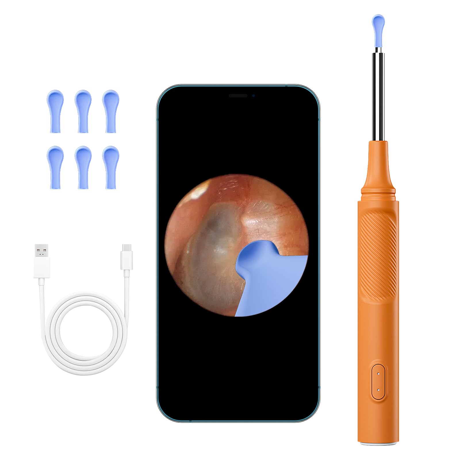 Ear Wax Removal Tools with HD Digital Camera - 360 Visibility Ear Cleaner 6 LED Lights Waterproof Ear Wax Removal Kit with 6 Replaceable Silicone Ear Covers Type-C Cable (Orange)