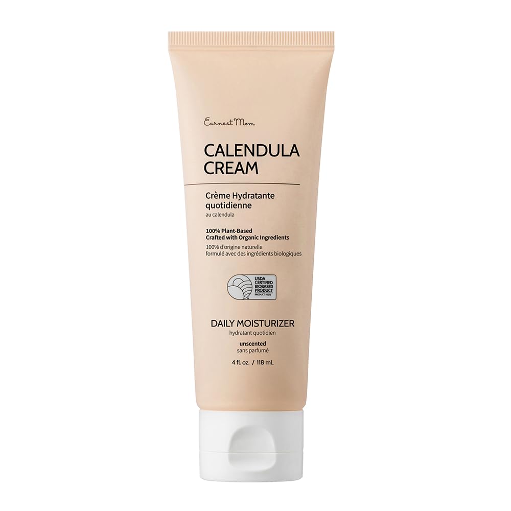 Earnest Mom: Gentle, Plant-Based Skincare for the Whole Family Our journey began with a simple goal: to create a cream gentle enough for a baby's delicate skin. But we quickly discovered that its powerful, soothing formula was exactly what adults with sensitive skin were looking for, too. Earnest Mom Calendula Cream is designed to be the perfect moisturizer for everyone. The Power of Nature's Best Ingredients We are proud to be USDA Certified 100 Bio-Based, meaning all ingredients are 100 plant-based. This, along with a formula containing 32 organic ingredients, ensures our cream is crafted from nature's best. We've combined three of the most revered ingredients in skincare to create a formula that soothes, repairs, and protects: Calendula Extract: A botanical wonder known for its remarkable ability to calm and reduce the appearance of redness and irritation. Cica Complex: Also known as "tiger grass," this ingredient is celebrated for its restorative properties, helping to repair and comfort stressed skin. 5-Layer Ceramide Blend: These essential building blocks of the skin barrier work to lock in moisture and protect your skin from daily damage. A Commitment to Clean Sustainable Skincare Beyond our gentle formulation, we are also a biodegradable product, reflecting our commitment to creating not only a safe solution for your skin but also a more sustainable one for the planet. This ensures a clean formula you can trust. Whether you're looking for a safe and effective cream for your family or a reliable solution for your own sensitive skin, Earnest Mom provides the care you can trust. Its rich, non-oily formula absorbs quickly, making it a joy to use on your face, hands, and body. Experience the Comfort. Restore Your Skin. Click "Add to Cart" and discover the moisturizing solution crafted for everyone in your family.HYDRATION WITHOUT THE HEAVY FEEL: The rich, non-oily texture absorbs quickly to deliver intense, long-lasting moisture. Enjoy a soft, supple feel that provides comfortable, all-day hydration. VERSATILE FOR THE WHOLE FAMILY: This fragrance-free and hypoallergenic cream can be used by all ages, from babies to adults. It is a versatile solution that works as a body lotion, a hand cream, and a daily facial moisturizer. REPAIR FORTIFY YOUR SKIN BARRIER: The advanced 5-layer Ceramide blend works to rebuild and strengthen your skin's natural moisture barrier, helping to prevent moisture loss and restore a healthy, resilient complexion. SOOTHE CALM IRRITATED SKIN: Made with Calendula extract and a potent Cica Complex (Centella Asiatica), this gentle cream provides immediate relief and deep comfort for dry, irritated, and sensitive skin on both the face and body. 100 PLANT-BASED USDA CERTIFIED: Our cream is USDA Certified 100 Bio-Based, meaning all ingredients are 100 plant-based and biodegradable. It also contains 32 organic ingredients, making it a clean and eco-friendly choice for pure and safe skincare.