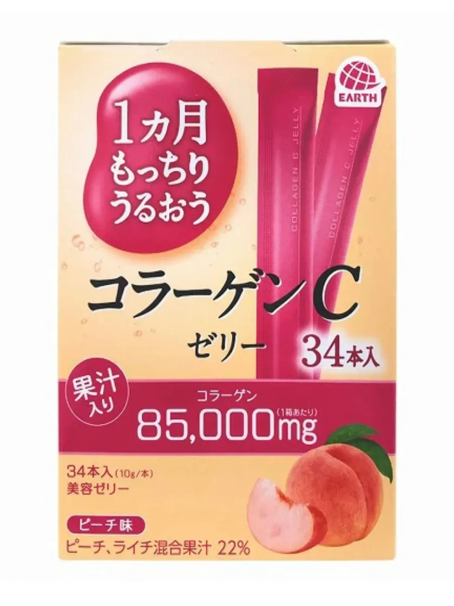 | Package contents | Earth Collagen Marine Peptide with Vitamin C Peach-flavored Jelly 34 sticks |