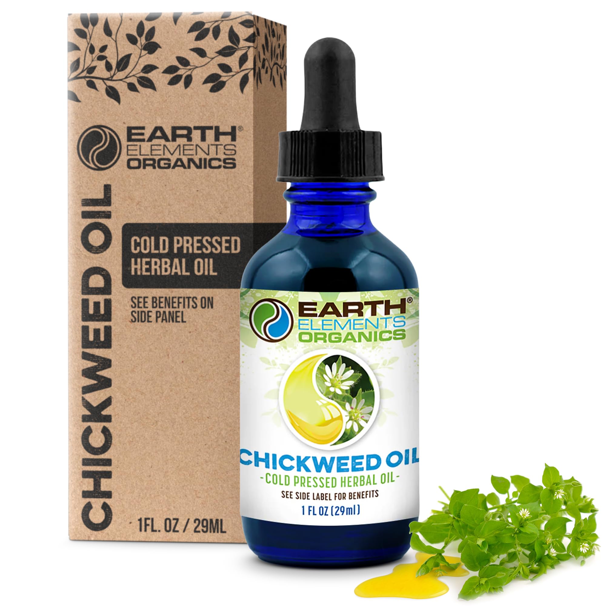 Earth Elements Organics Chickweed Oil Herbal Remedy Infused in Sunflower Seed Oil Organic Skincare for All Skin Types - 1 fl oz