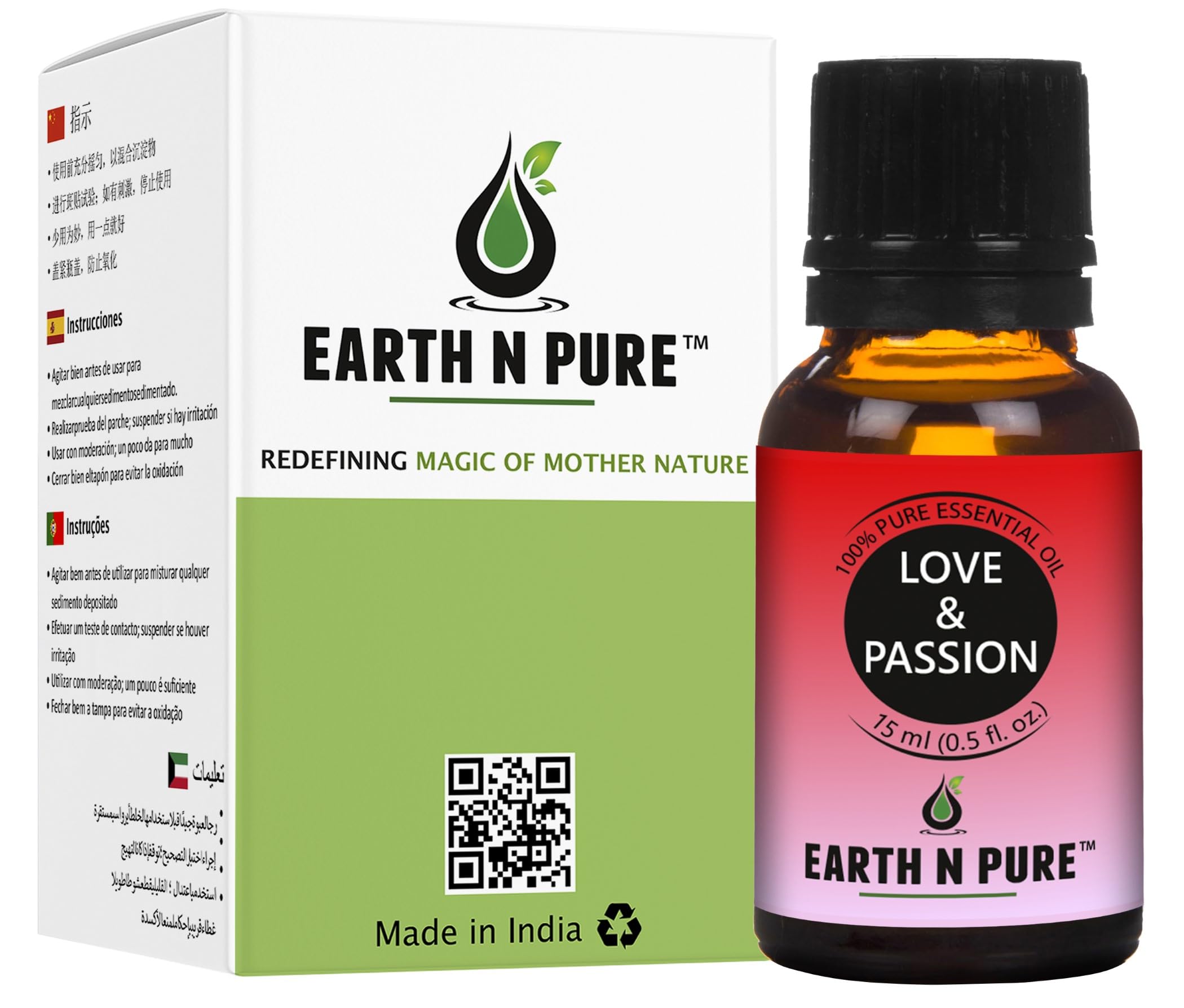 Earth N Pure Essential Oil Blend for Love & Passion | 15 ml | 100% Pure Therapeutic Grade Blend | For Romance Positivity Relaxation Diffuser Bath & Massage Geranium Jasmine Sandalwood & Lavender 0.53 Fl Oz (Pack of 1)