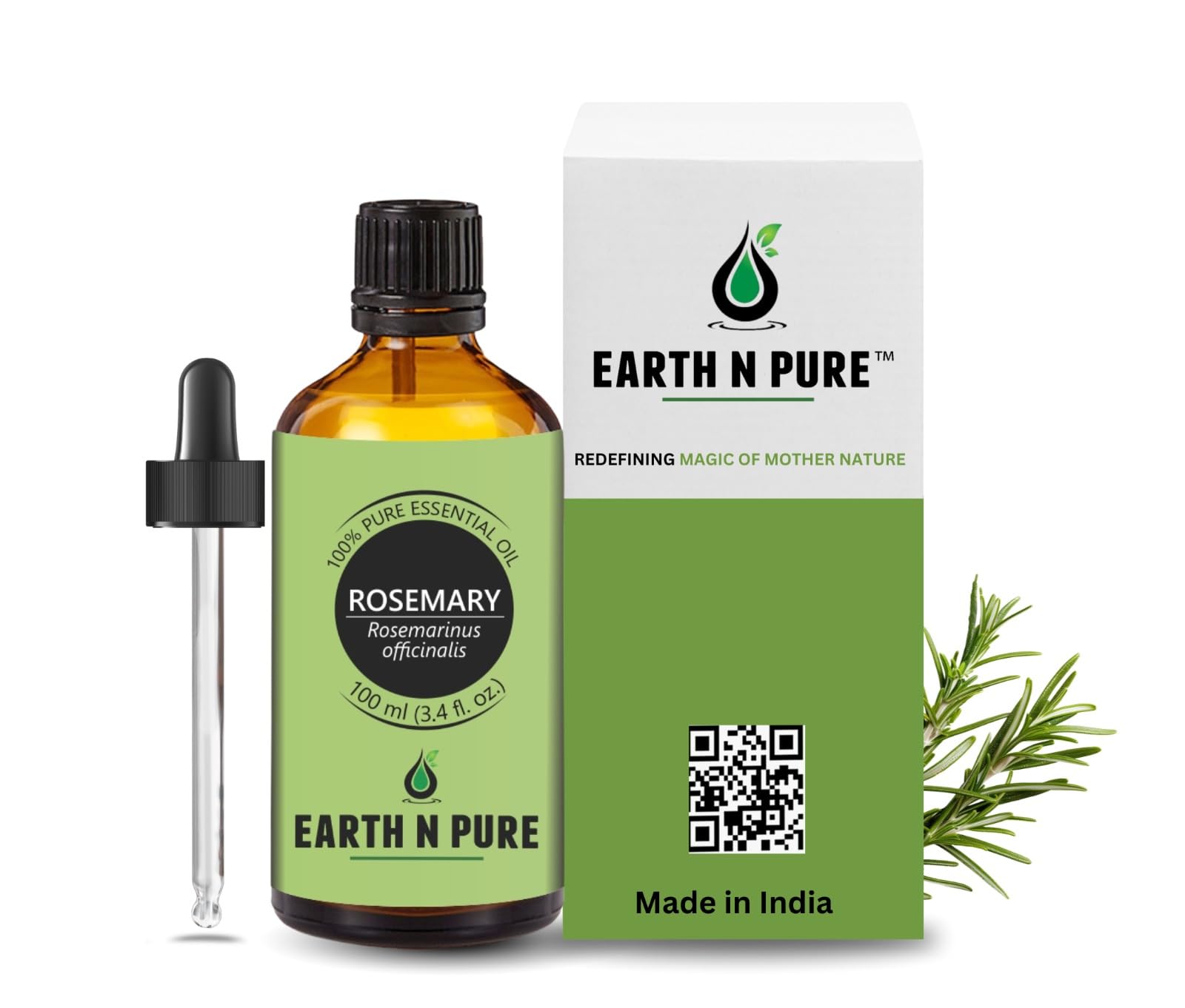 Earth N Pure Rosemary Essential Oil for Hair Growth Natural & Therapeutic Grade with Glass Dropper - 100 ml