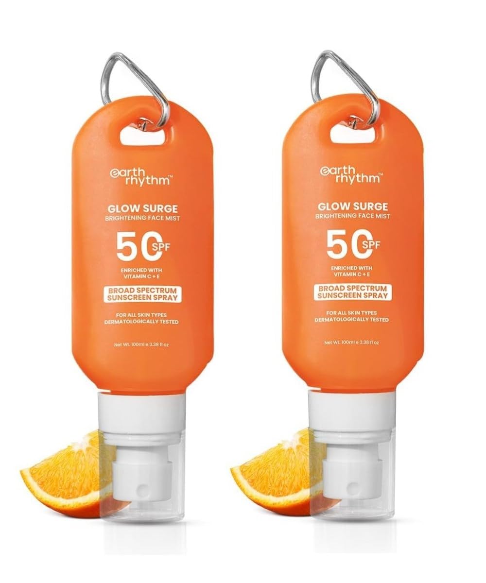 Earth-Rhythm's Glow Surge Brightening Sunscreen Spray with Vitamin C & E SPF 50 Broad Spectrum 100 ml Pack of 2