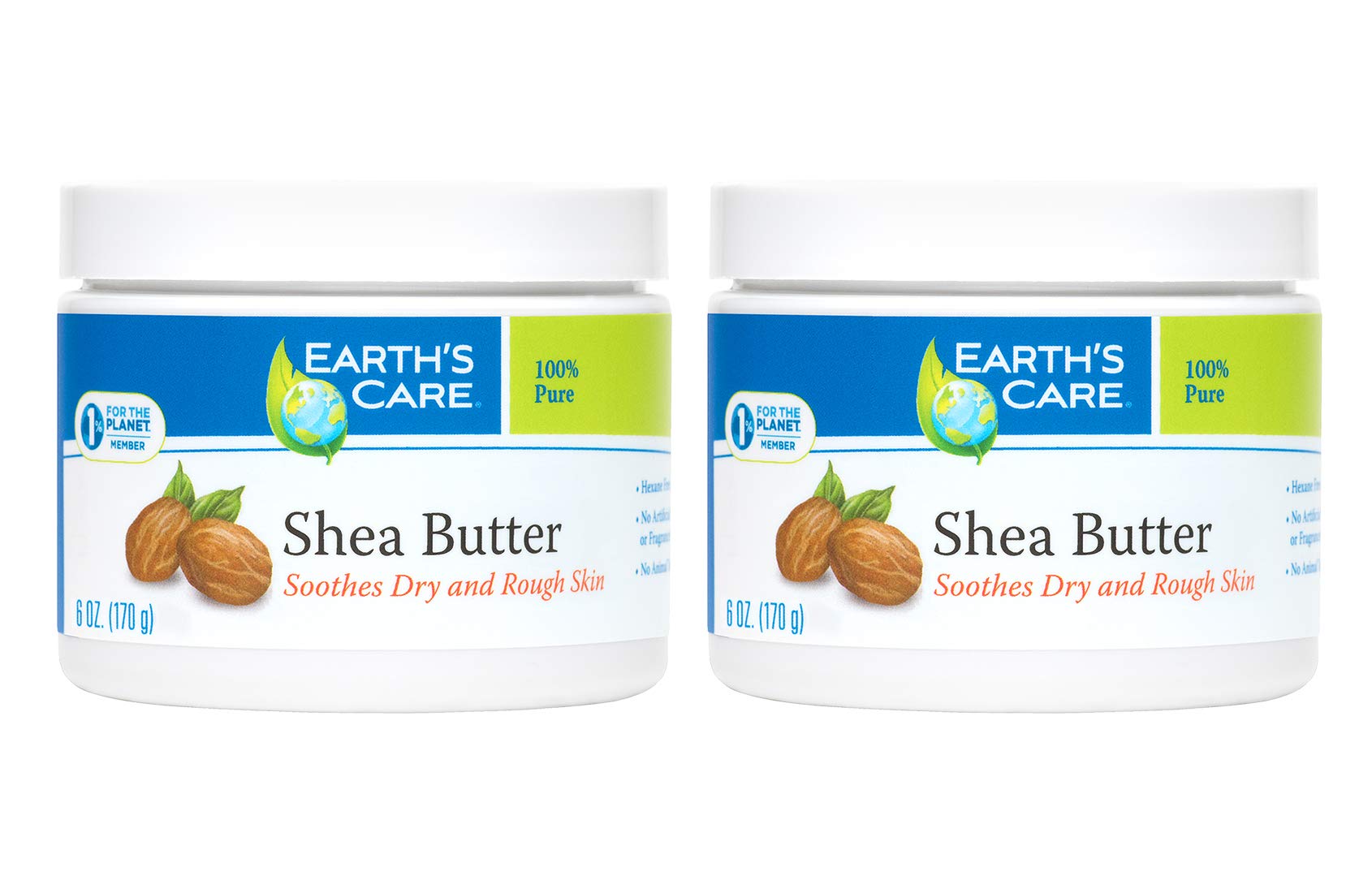 Earth's Care Pure Shea Butter, Hexane-Free, No Artificial Colors or Fragrances, Packed in USA 6 OZ. (2 Jars)