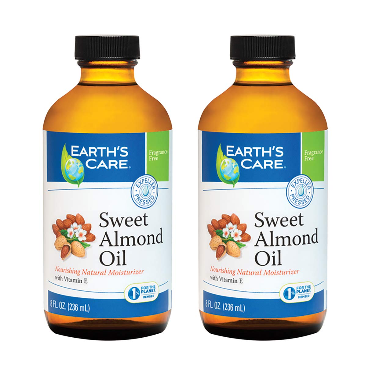 Earth s Care Sweet Almond Oil - Expeller Pressed Almond Oil for Skin and Hair 8 FL. OZ. (2 Bottles) 8.00 Fl Oz (Pack of 2)