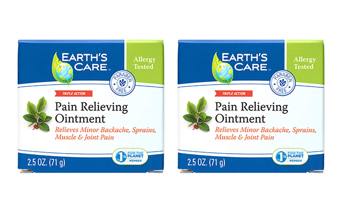 Earth's Care Triple Action Pain Relieving Ointment, No Parabens, Colors or Fragrances, Allergy-Tested 2.5 OZ. (2 Jars)