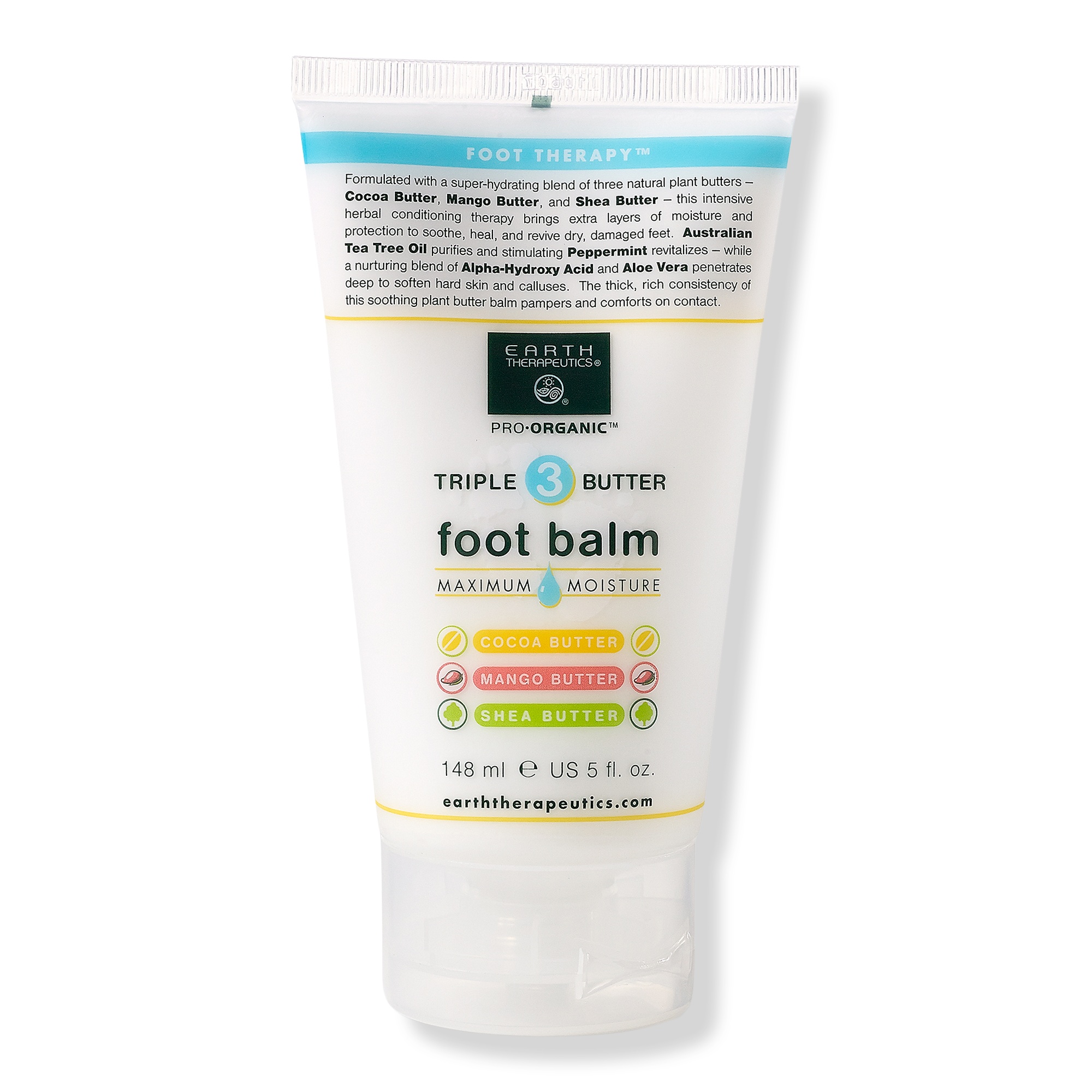 Earth Therapeutics Triple Butter organic foot balm. Intensive herbal conditioning therapy that brings extra layers of moisture and protectin to soothe, heal and revive dry, damaged feet.