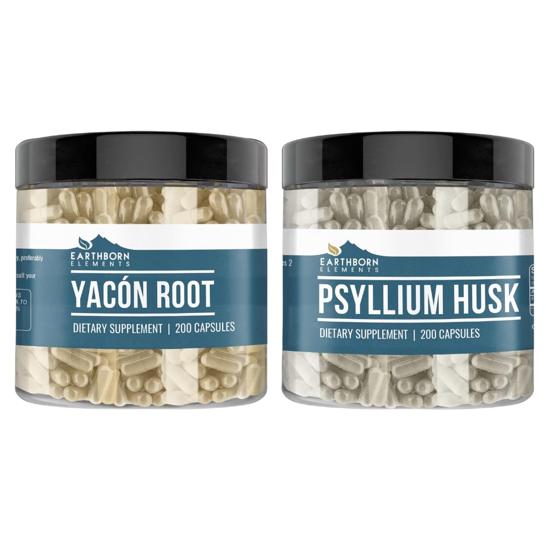 Earthborn Elements Psyllium Husk and Yacon Root Bundle 200 Capsules Pure & Undiluted No Additives