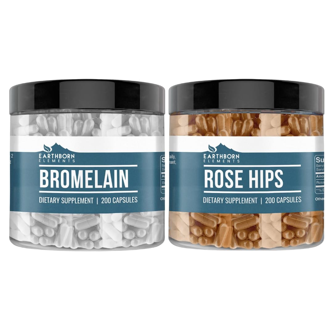 Earthborn Elements Rose HIPS & Bromelain Capsule Bundle (200 Capsules Each) Pure & Undiluted No Additives